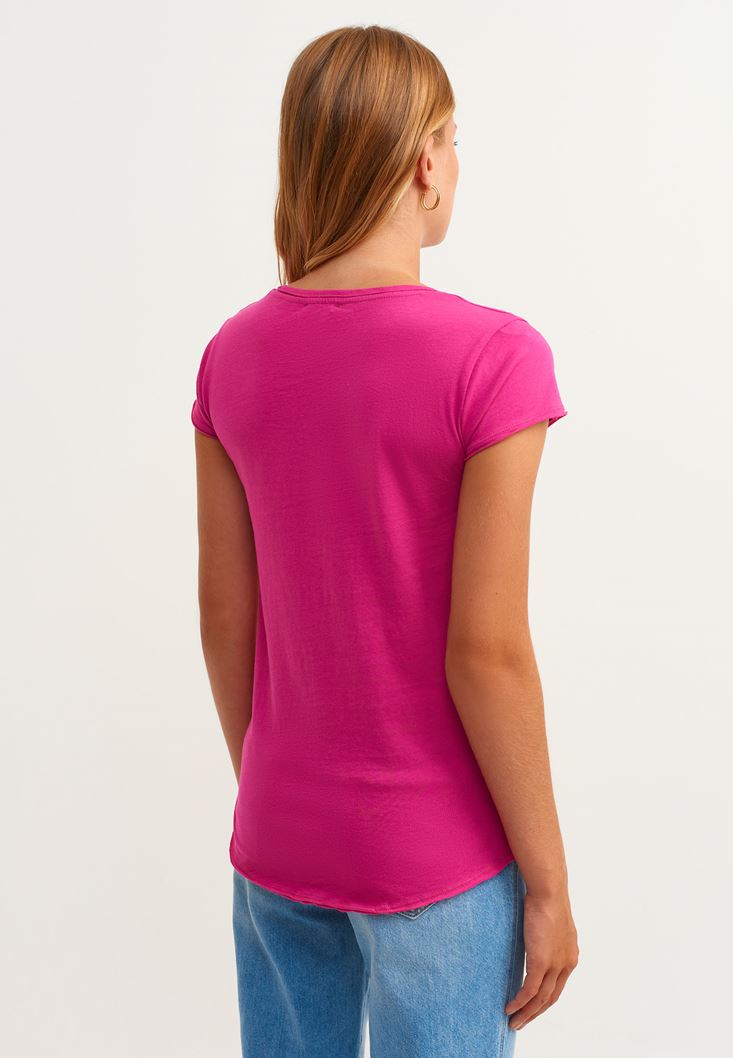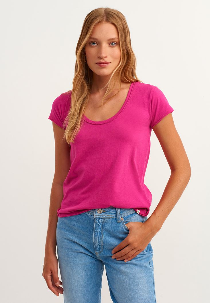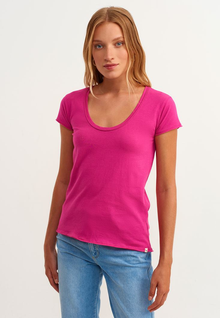 • Bayan Pembe U Yaka Pamuklu Tişört