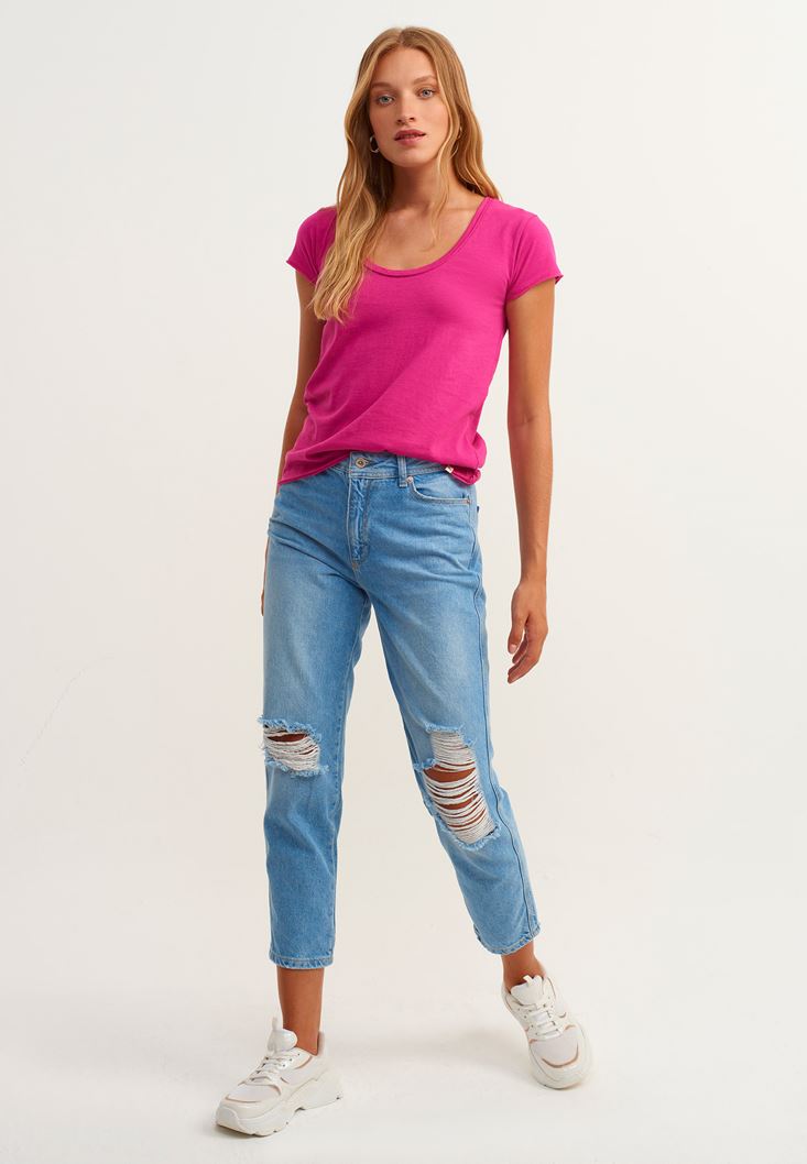 Oxxo U Yaka Pamuklu Tişört 2123143298