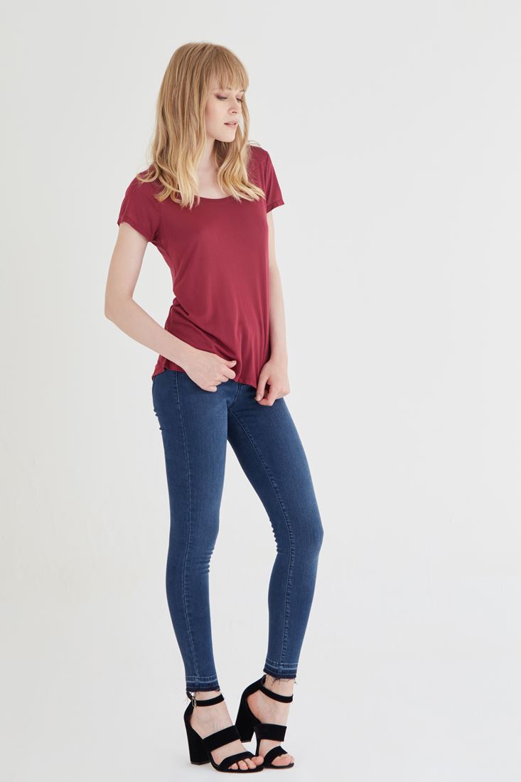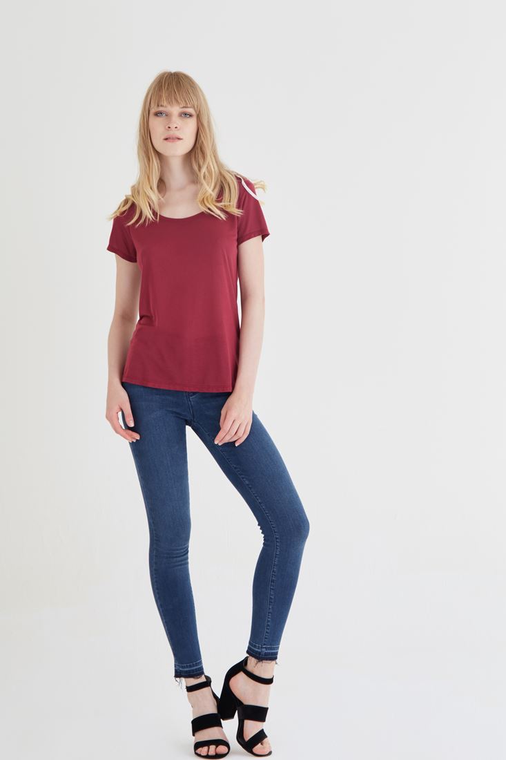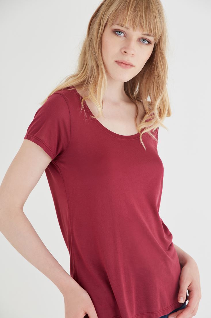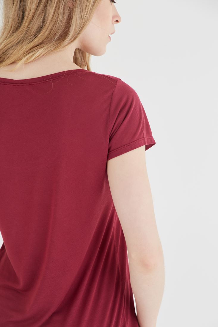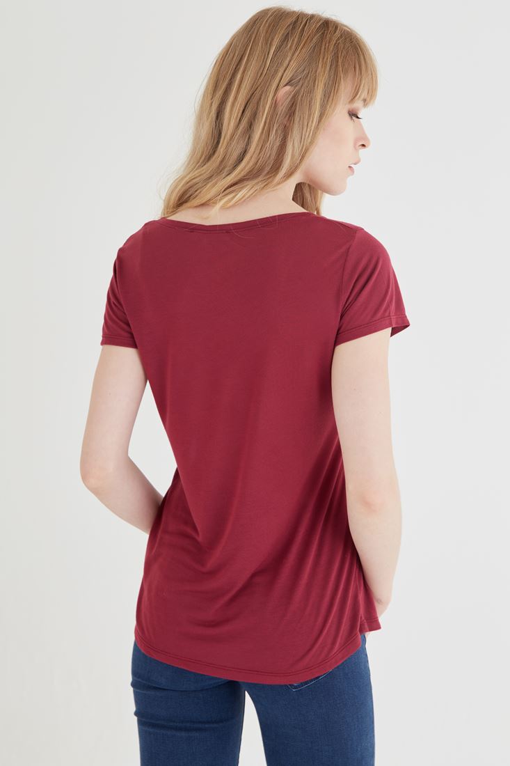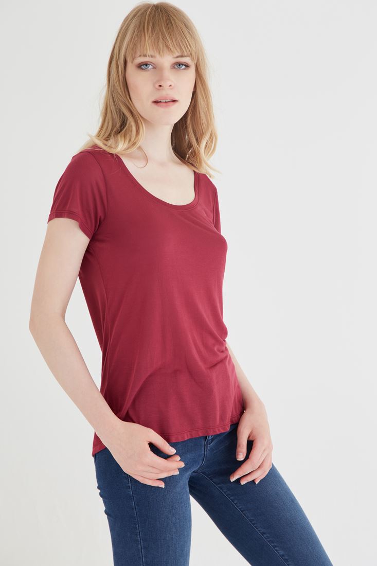 Bordo U Yaka Tişört