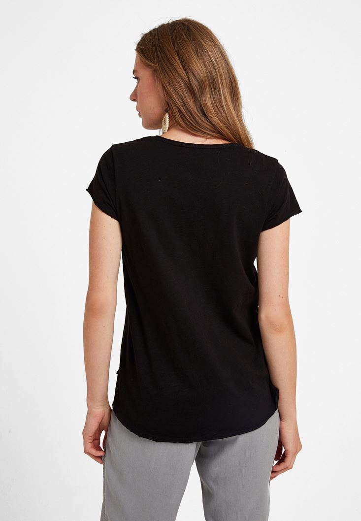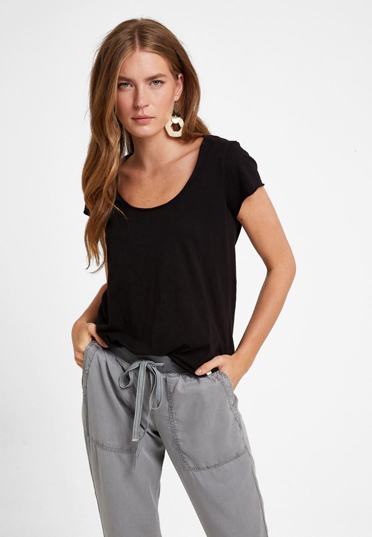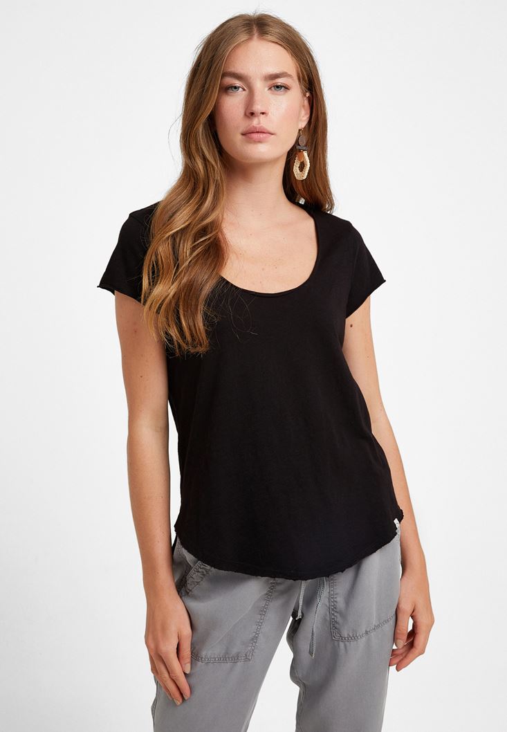 Siyah U Yaka Tişört