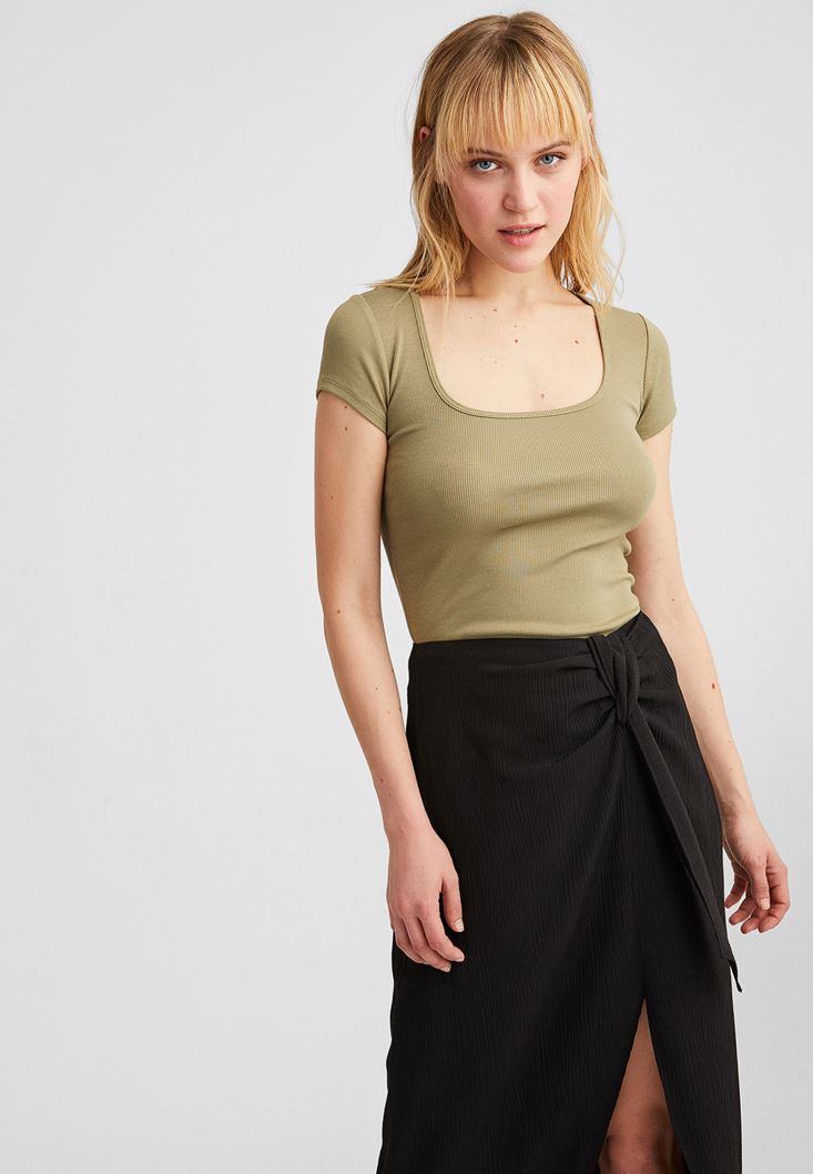 Yeşil U Yaka Tişört