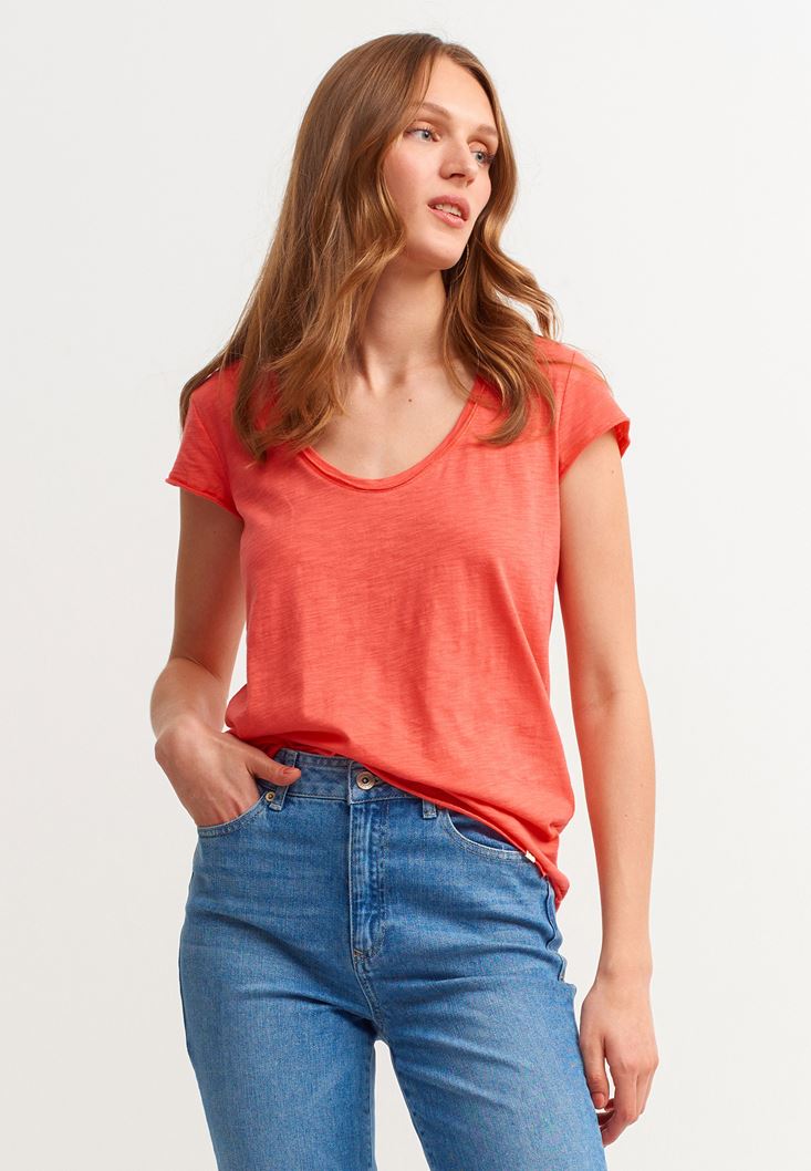 U Yaka Tişört modeli, pamuk içerikli yumuşacık dokusu ve nefes alabilen kumaş yapısı ile yeni sezona dahil oluyor. Kadın tişört modeli, U yaka kesimi ve dökümlü kalıbı ile kombinlerinize ekleyebileceğiniz bir parça olarak Oxxo'da sizlere sunuluyor. U yaka tişört modeli, dikkat çeken renkleri ve kullanışlı yapısı ile ön plana çıkıyor. Jean pantolonlarla veya desenli eteklerle elde edeceğiniz mükemmel kombinleri kadın tişört modeli ile hareketlendirebilirsiniz. U yaka tişört modeli ile triko hırkaları veya kot ceketleri de rahatlıkla bir araya getirebilirsiniz. Oxxo'nun pamuk içerikli dokularla ve sevilen detaylarla sizlere sunduğu kadın tişört modelleri ile aradığınız farklılığı yakalayabilirsiniz.