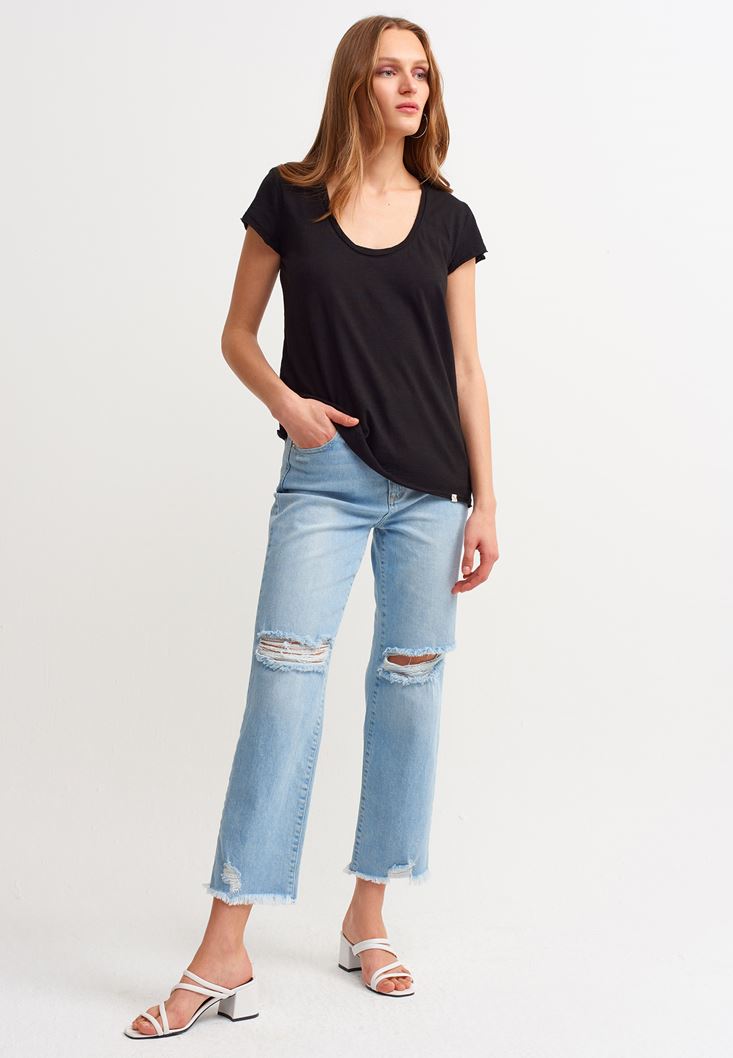 Siyah U Yaka Tişört