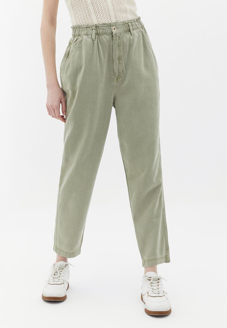 Yeşil Ultra Yüksek Bel Baggy-Fit Pantolon ( TENCEL™ )
