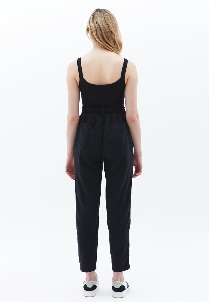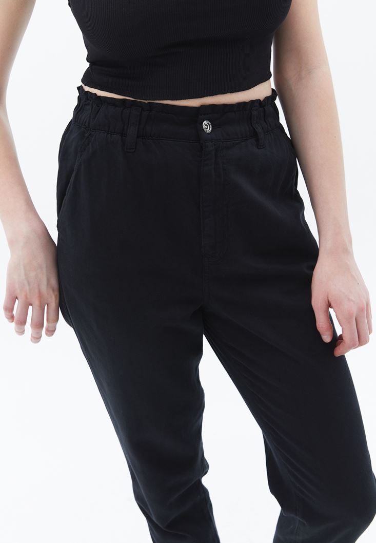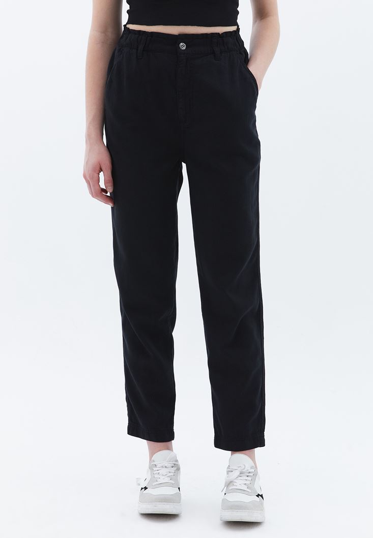 Siyah Ultra Yüksek Bel Baggy-Fit Pantolon ( TENCEL™ )