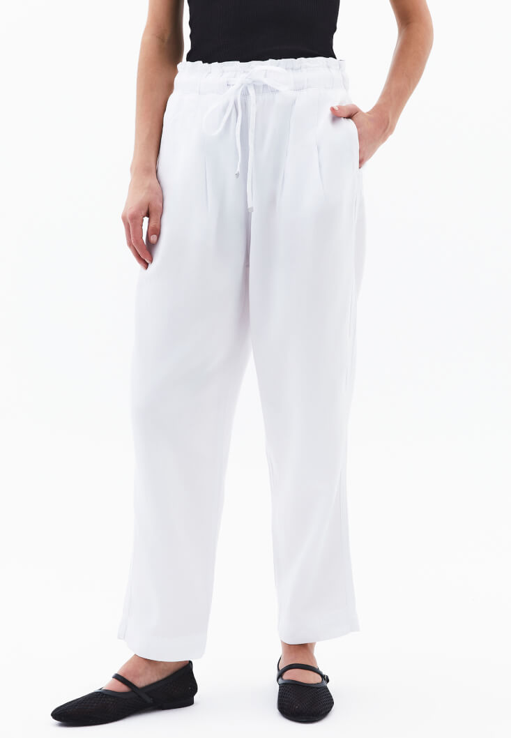 • Bayan Beyaz Ultra Yüksek Bel Baggy-Fit Pantolon ( TENCEL™ )