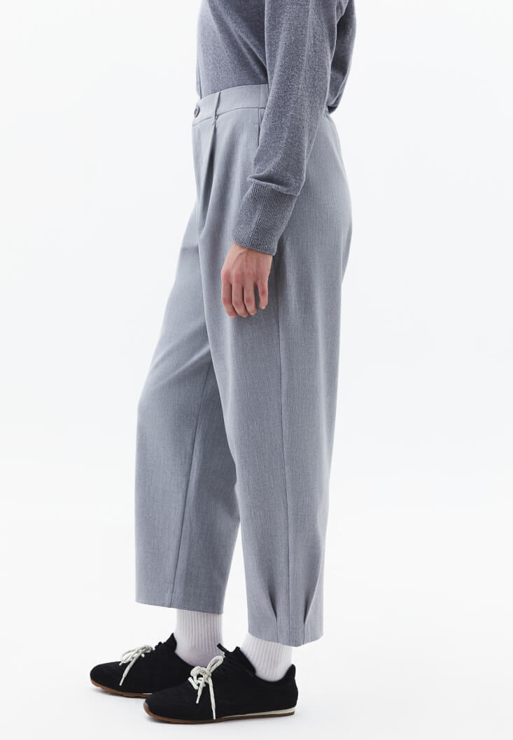 Viskon karışımlı özel doku, ultra yüksek bel, bedenden uzak balon fit, ön bel kısmı pile detaylı, havuç kesim paça, iki cepli, arka bel kısmı lastikli.