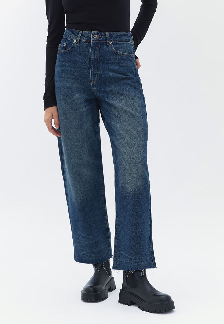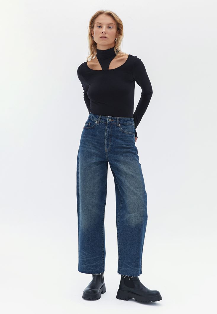 • Bayan Mavi Ultra Yüksek Bel Barrel-Fit Pantolon