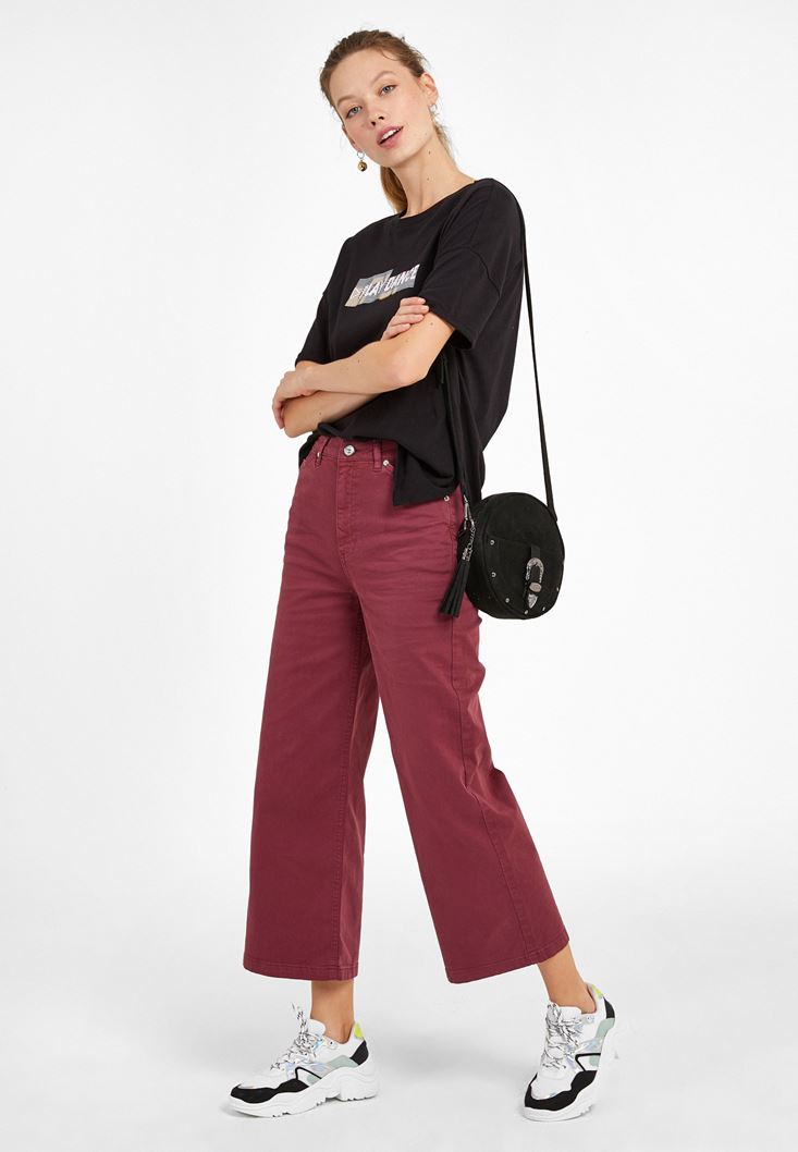 • Bayan Bordo Ultra Yüksek Bel Bol Pantolon