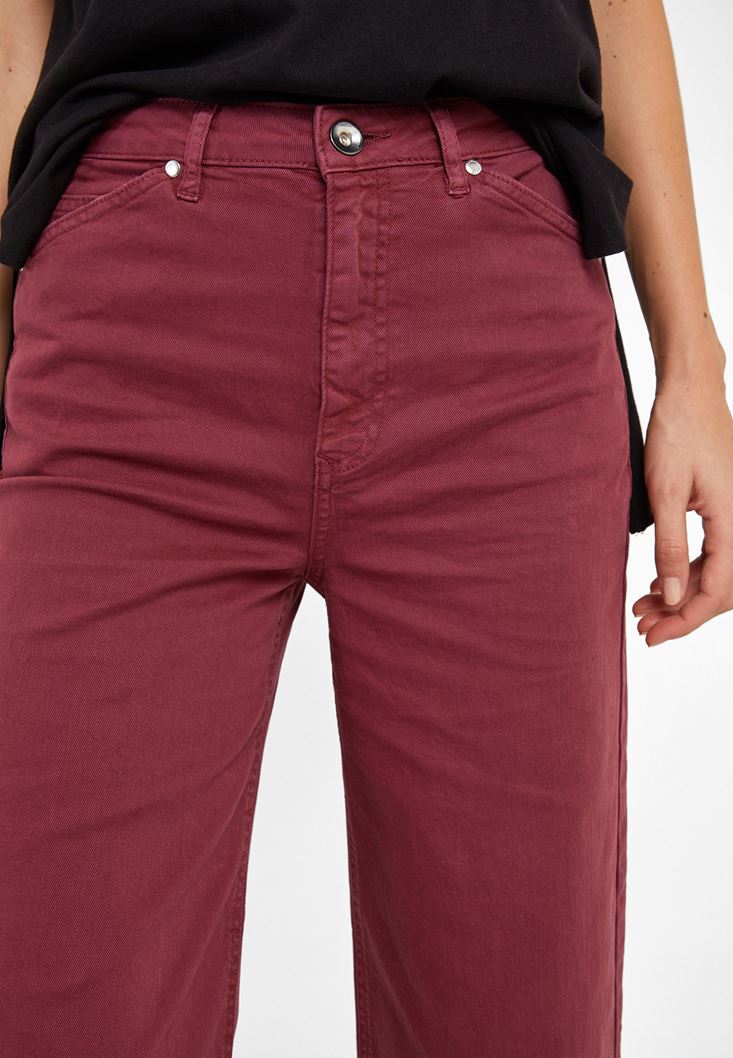 Bordo Ultra Yüksek Bel Bol Pantolon