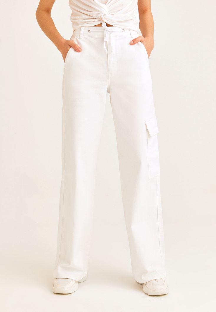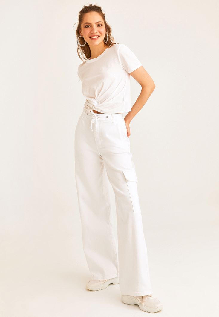 • Bayan Beyaz Ultra Yüksek Bel Bol Pantolon