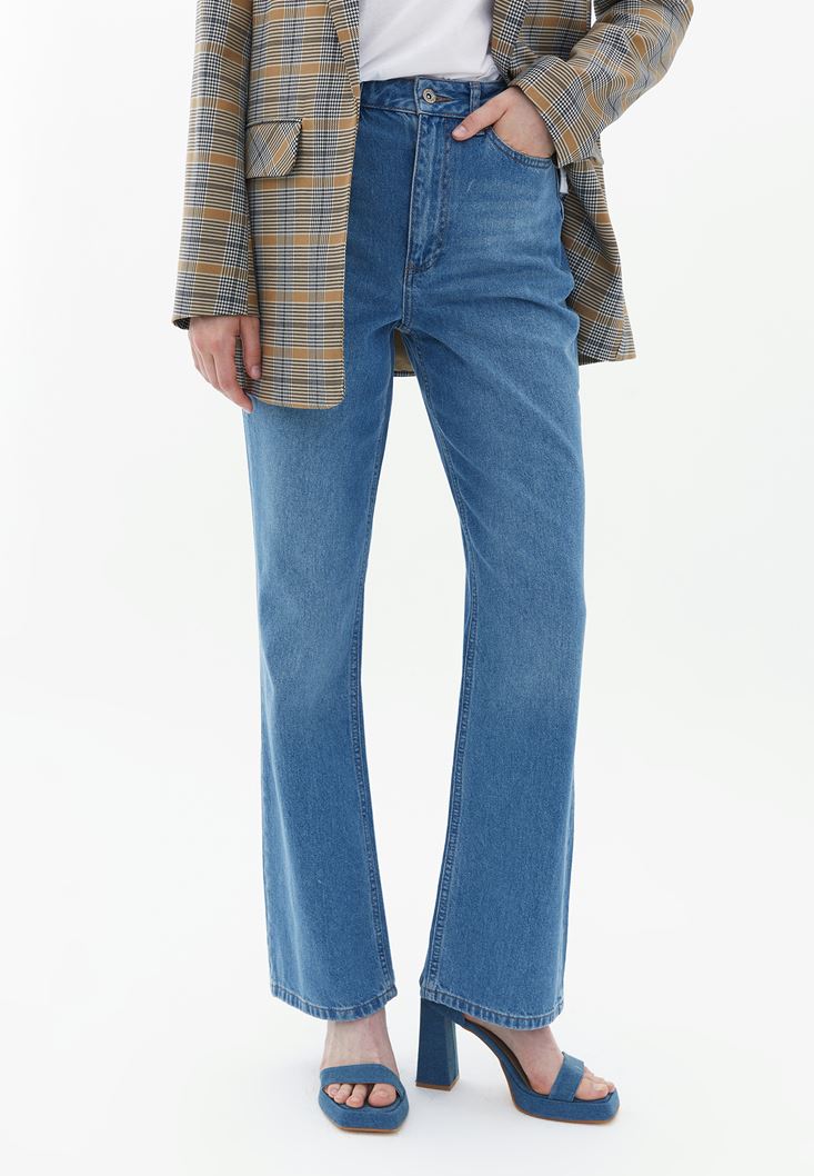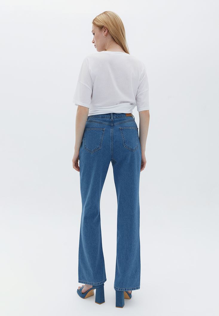 %100 pamuklu denim, ultra yüksek bel, bedene yakın bootcut fit, önü ve arkası ikişer cepli, bot paça.