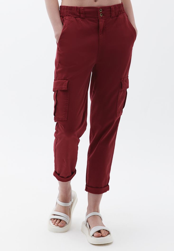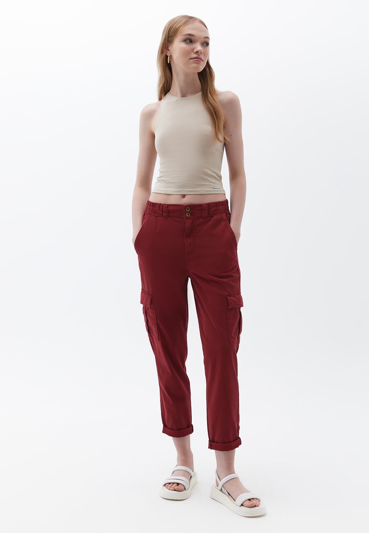 • Bayan Bordo Ultra Yüksek Bel Carrot-Fit Pantolon