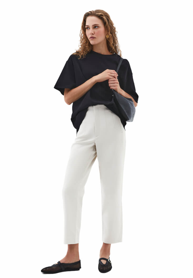 • Bayan Krem Ultra Yüksek Bel Carrot-Fit Pantolon