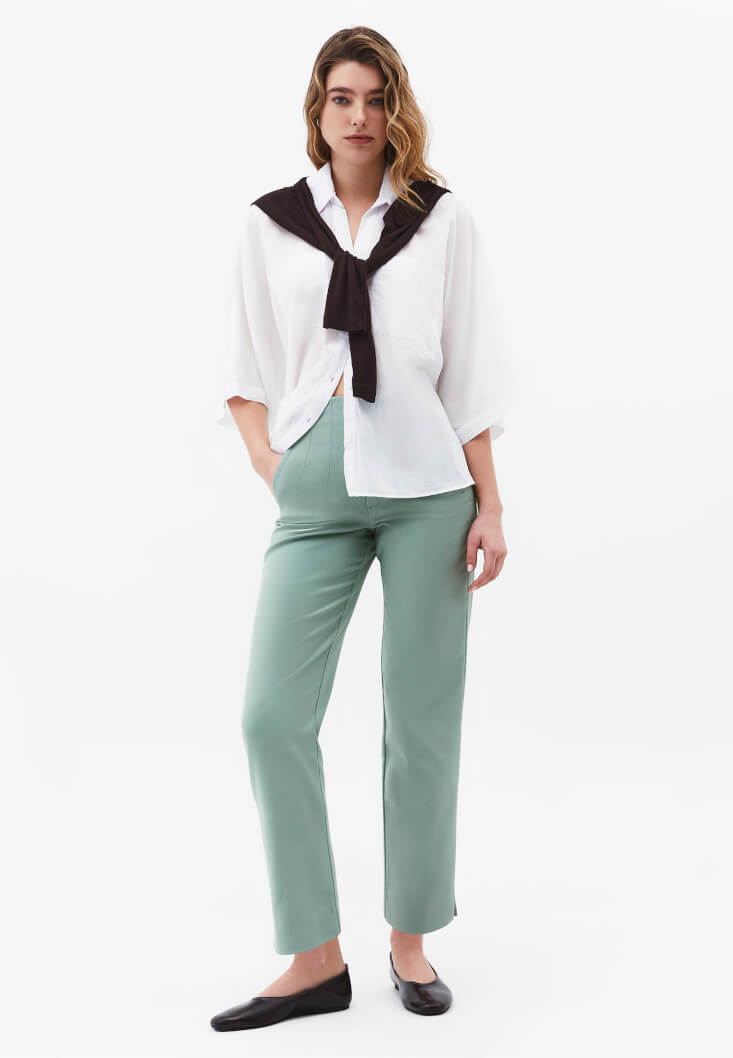 • Bayan Yeşil Ultra Yüksek Bel Carrot-Fit Pantolon
