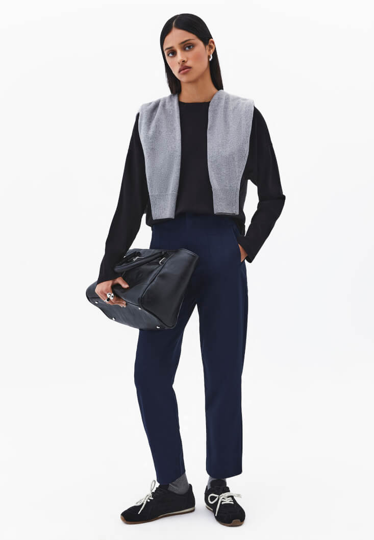 Klasik terzilik detaylarını sokak stilinin dinamizmiyle birleştiren, proporsiyon oyunlarının en şık parçası. Carrot Fit (havuç kesim) formuyla basen bölgesinde konforlu bir hacim sunarken, paçaya doğru hafifçe daralan yapısıyla modern ve dengeli bir duruş sergiliyor.