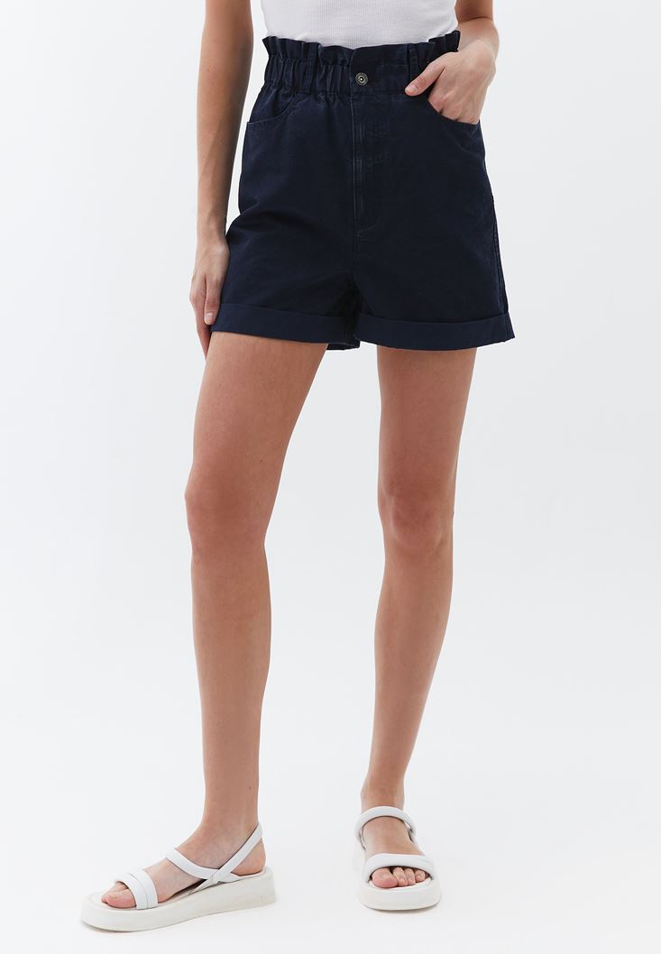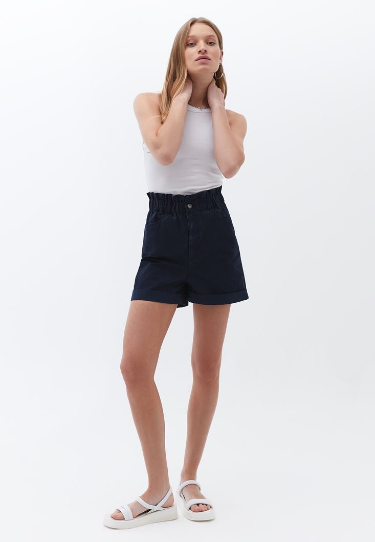 • Bayan Lacivert Ultra Yüksek Bel Denim Şort ( TENCEL™ )