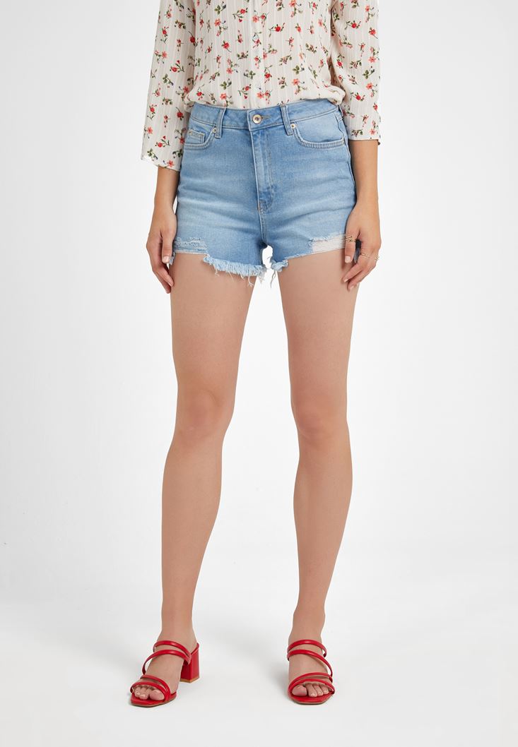 Ultra Yüksek Bel Denim Şort modeli, pamuklu dokusu ve hoş görünümü ile sizlere sunuluyor. kadın denim şort modeli, yırtık detaylı tasarımı ve yüksek bel duruşu sayesinde sizleri hem şıklık hem de rahatlıkla buluşturuyor. Kadın şort modeli ile sıcak yaz aylarında askılı atlet modelleri veya baskılı tişört modelleri tercih edebilirsiniz. Bahar aylarında ise uzun kollu bluz veya gömlek modelleri ile hoş bir uyum yakalamanız için ideal seçenek olan kadın denim şort ile şıklığınızı kolaylıkla vurgulayabilirsiniz. kadın sneaker ayakkabı veya şık sandalet modelleri ile muhteşem bir ahenk yakalatan kadın denim şort modeli ile hoş görünümler yaratabilirsiniz. Oxxo'nun farklı alanlar için kullanım çeşitliliği sunan kadın şort modelleri ile daima tarz giyim şıklığı elde edebilirsiniz.