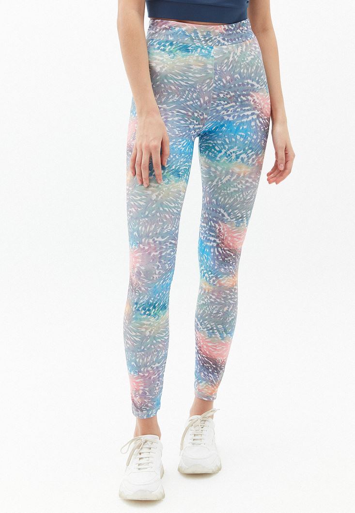 Çok Renkli Ultra Yüksek Bel Desenli Tayt