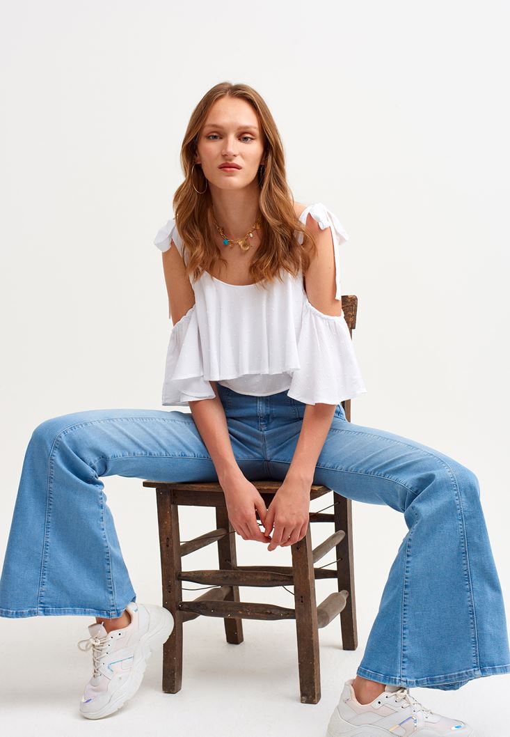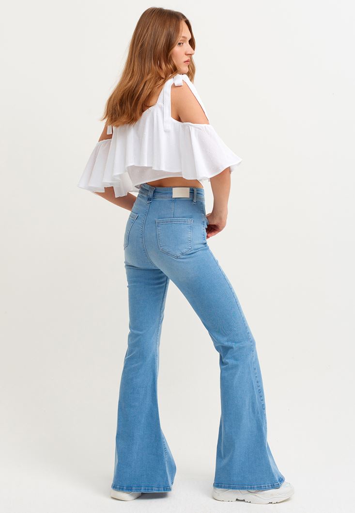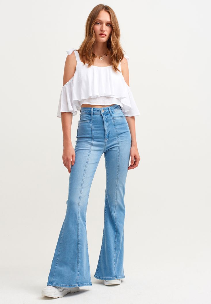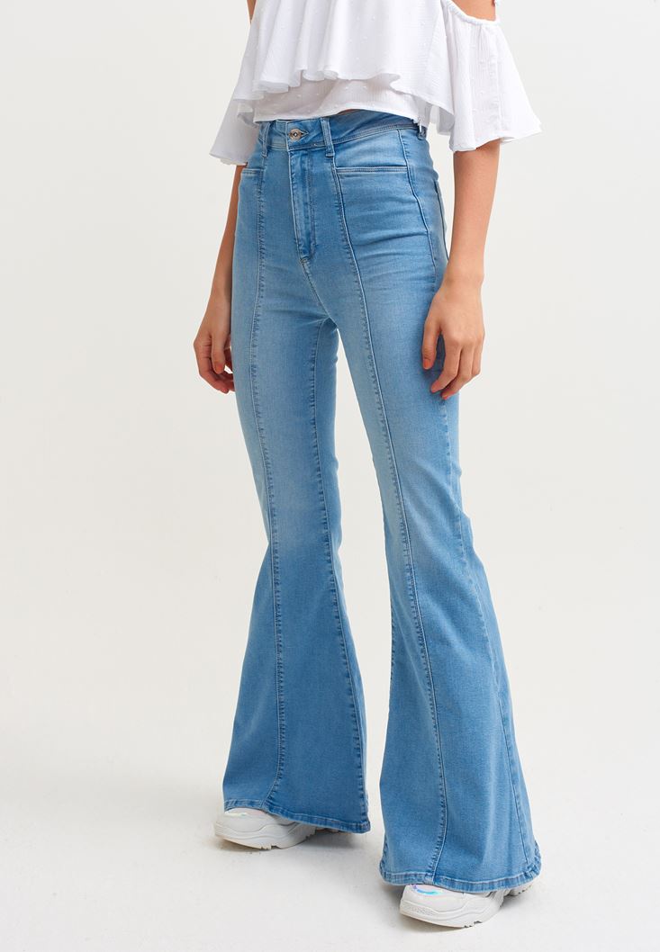 • Bayan Mavi Ultra Yüksek Bel Flare Paça Pantolon