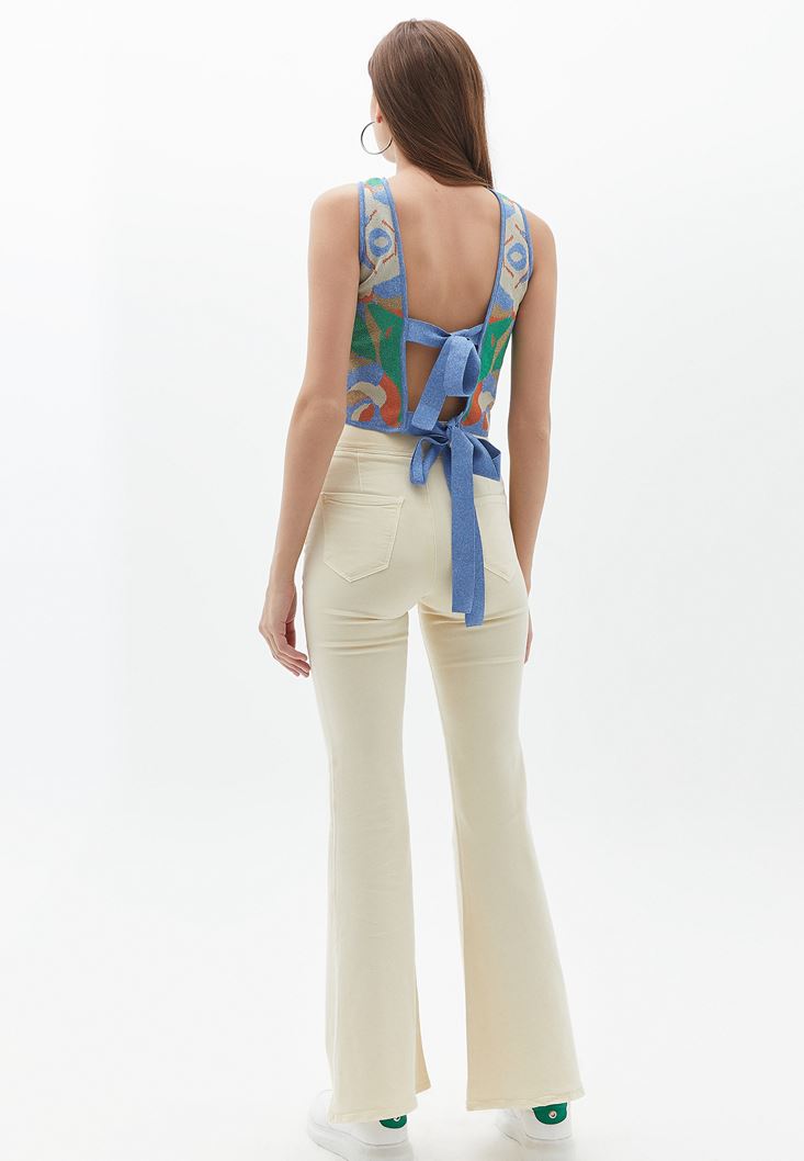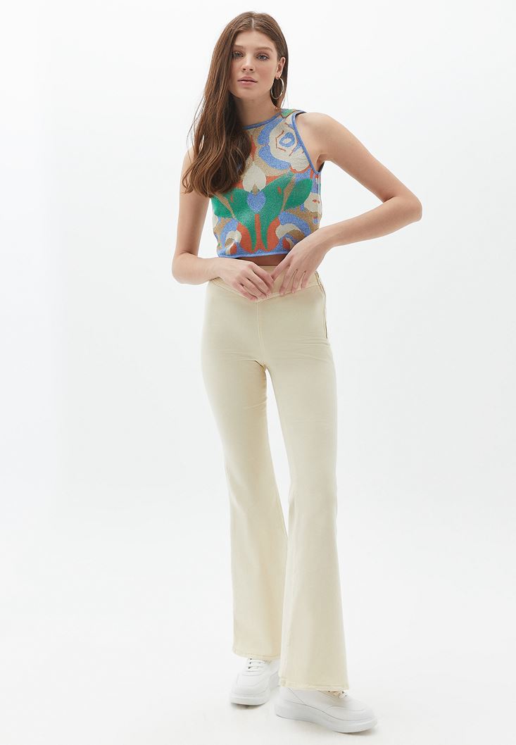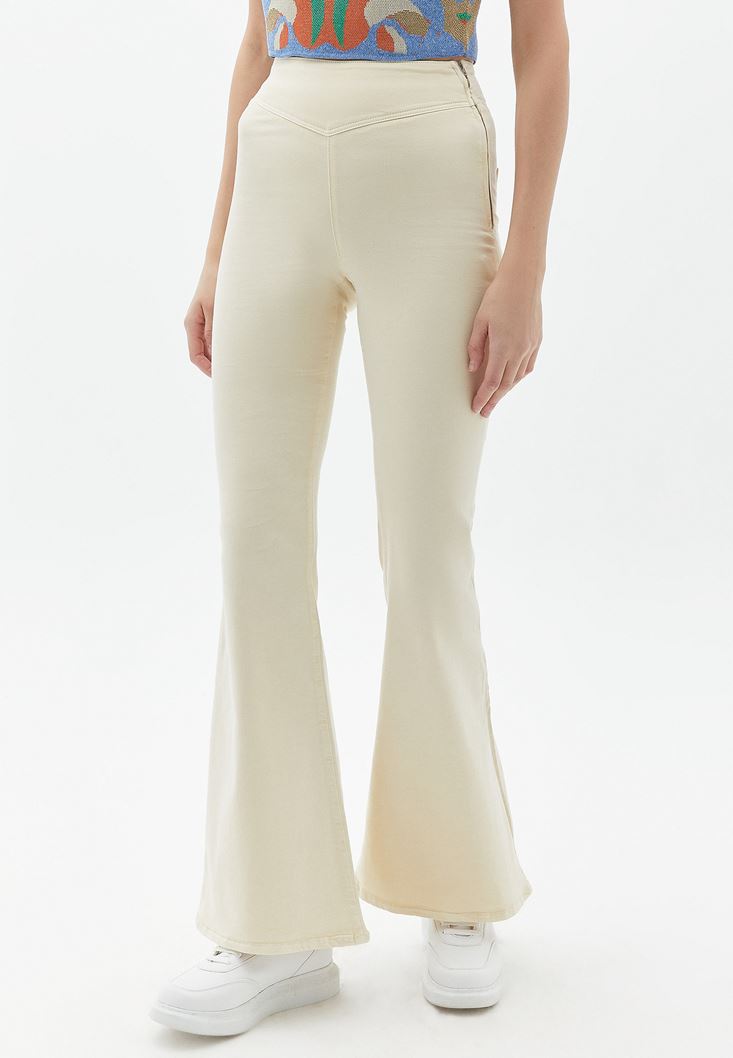 Bej Ultra Yüksek Bel Flare Pantolon