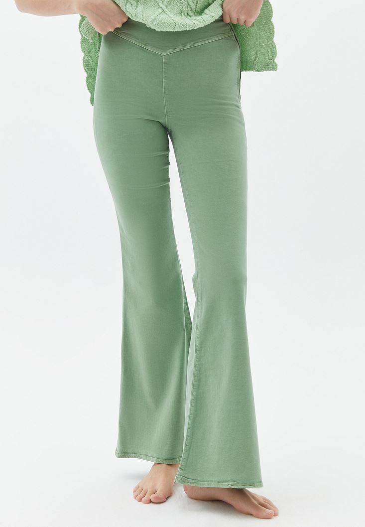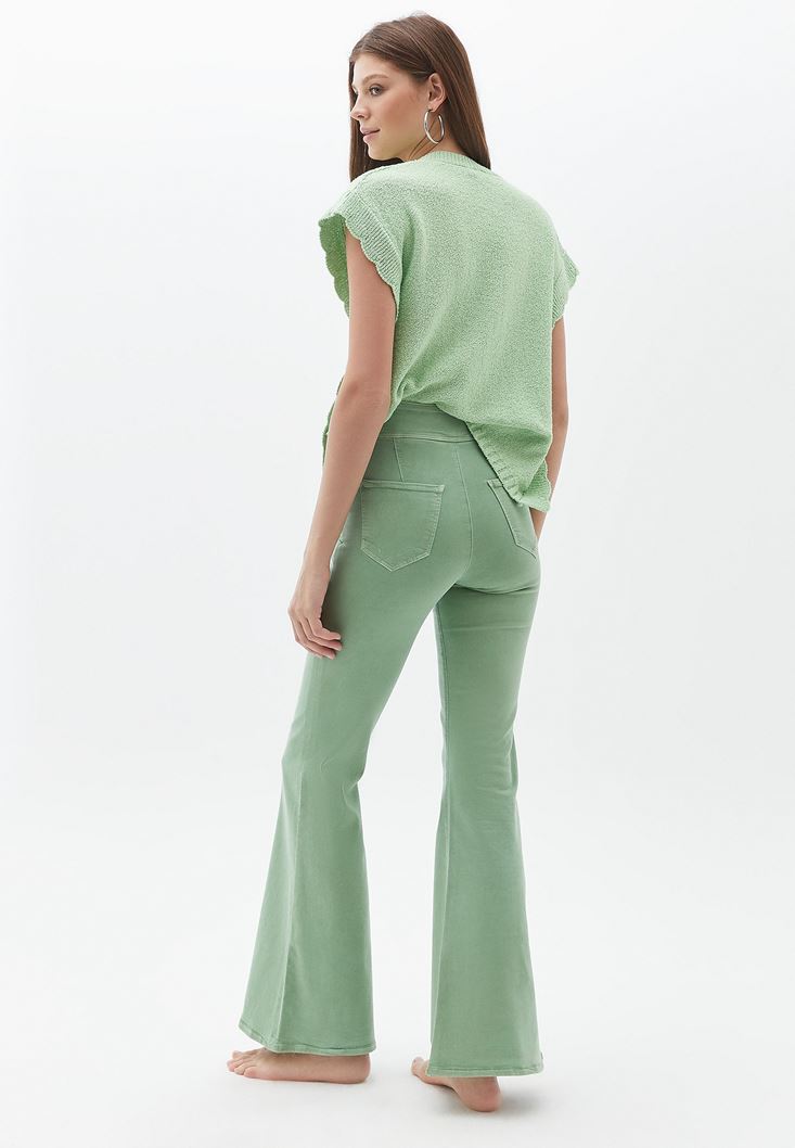 Yeşil Ultra Yüksek Bel Flare Pantolon