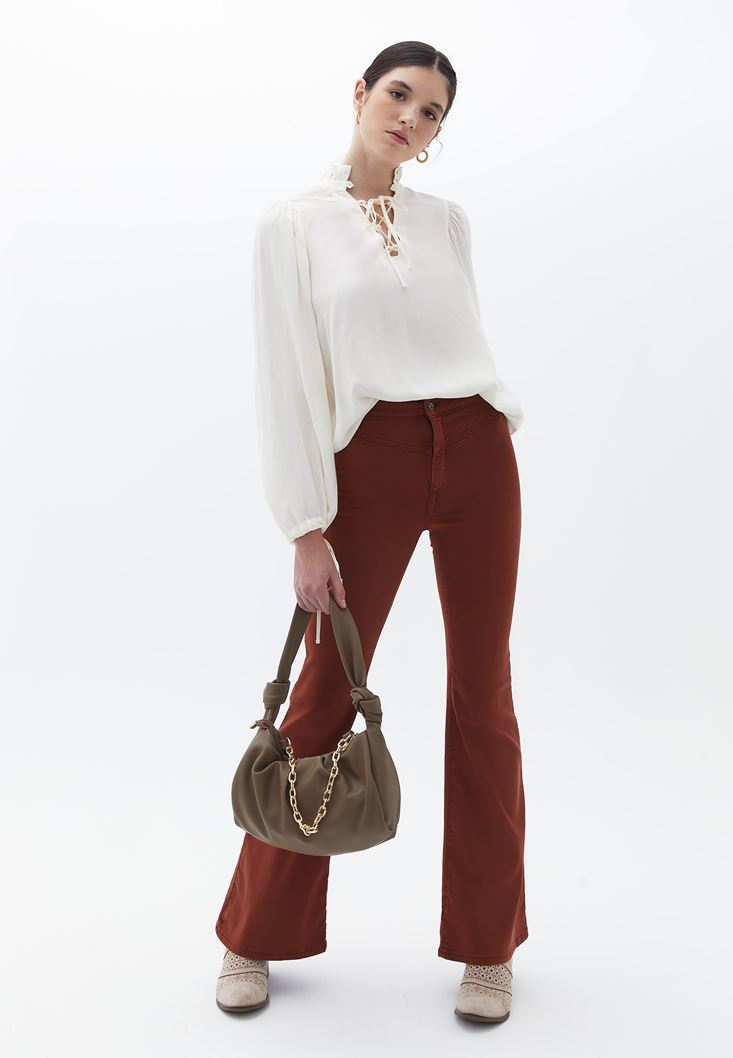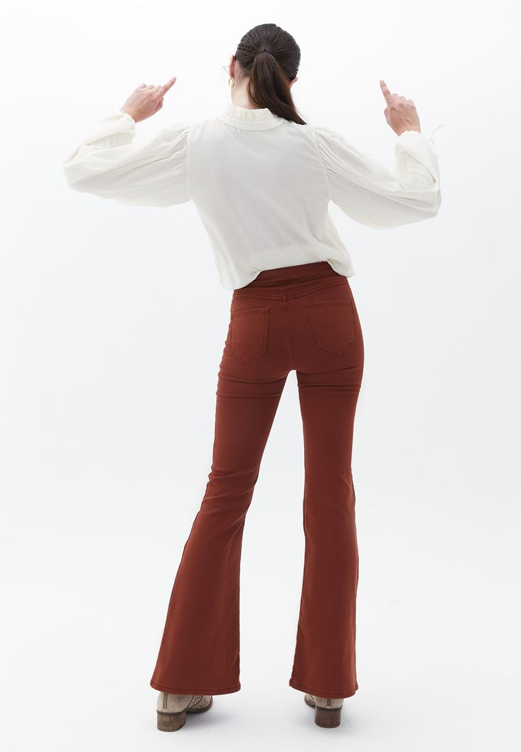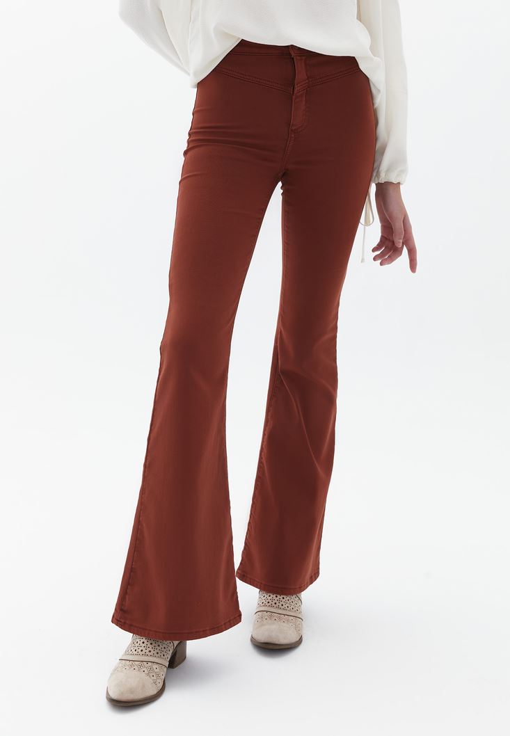 Kahverengi Ultra Yüksek Bel Flare Pantolon