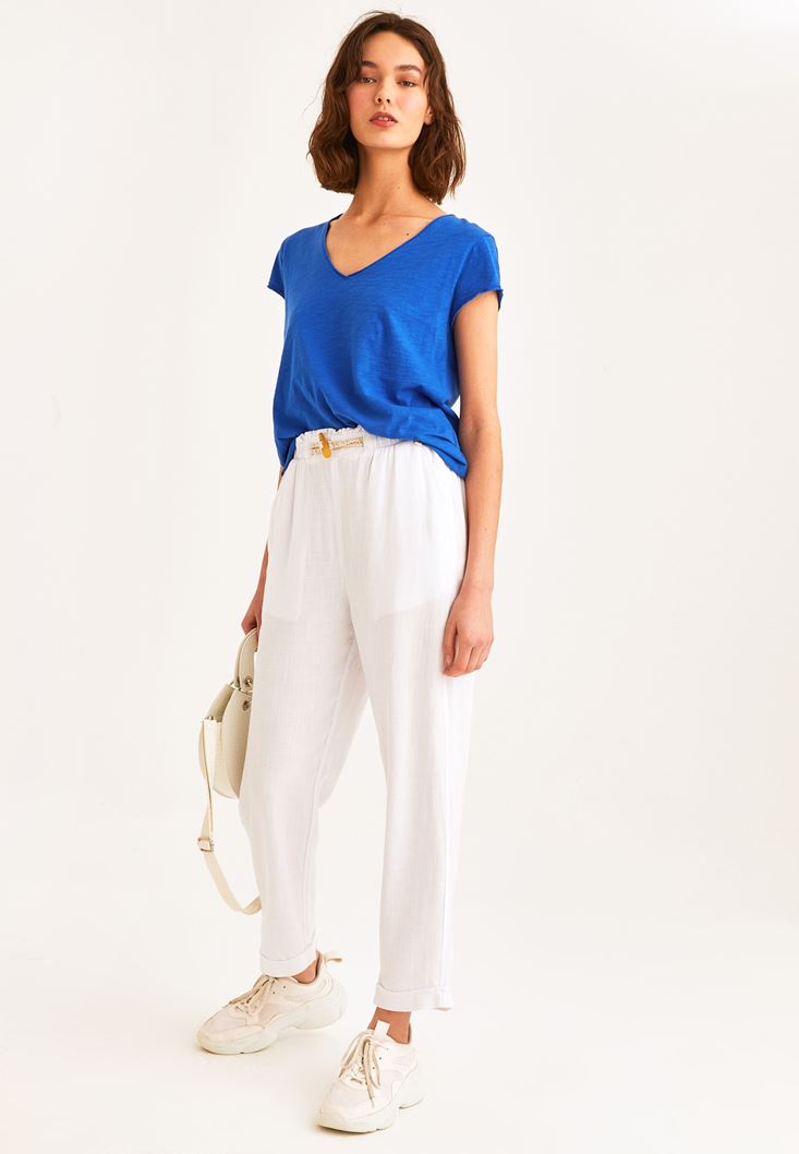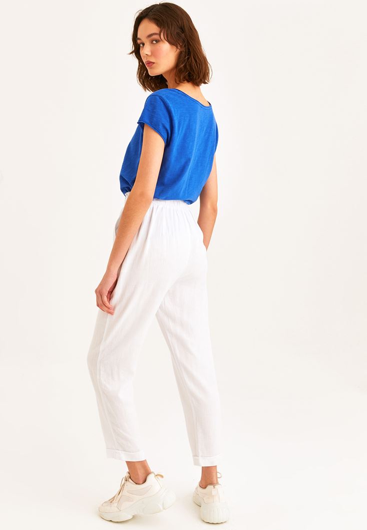 Yüksek Bel Bol Pantolon modeli, Lyocell ve keten içerikli dokusu sayesinde nefes alabilen kumaş yapısı eşliğinde sizlerle buluşuyor. Yüksek bel pantolon modeli, geniş kalıbı ve büzgülü bel detayı ile Oxxo'da karşınıza çıkıyor. Crop atletlerle veya bluzlarla dilediğiniz şıklığı yakalamak için bol pantolon modelini kullanabilirsiniz. Yüksek bel pantolon modeli ile oluşturacağınız benzersiz görünümü renkli sneakerlarla veya topuklu terliklerle destekleyebilirsiniz. Oxxo'nun mükemmel dokularla ve dikkat çeken ayrıntılarla sizlere sunduğu bol pantolon modelleri ile tarzınıza en iyi şekilde yön verebilirsiniz.