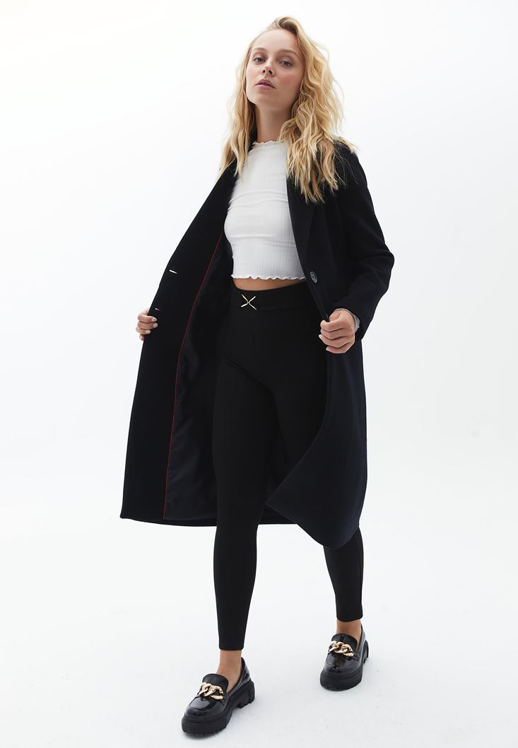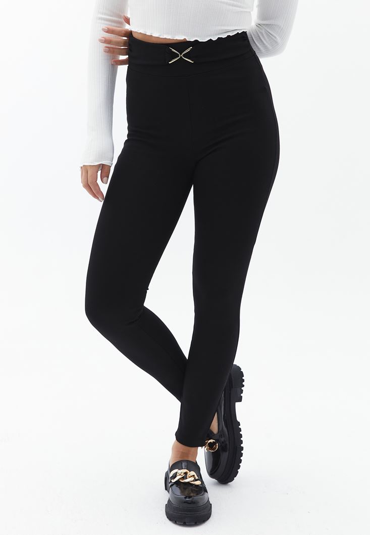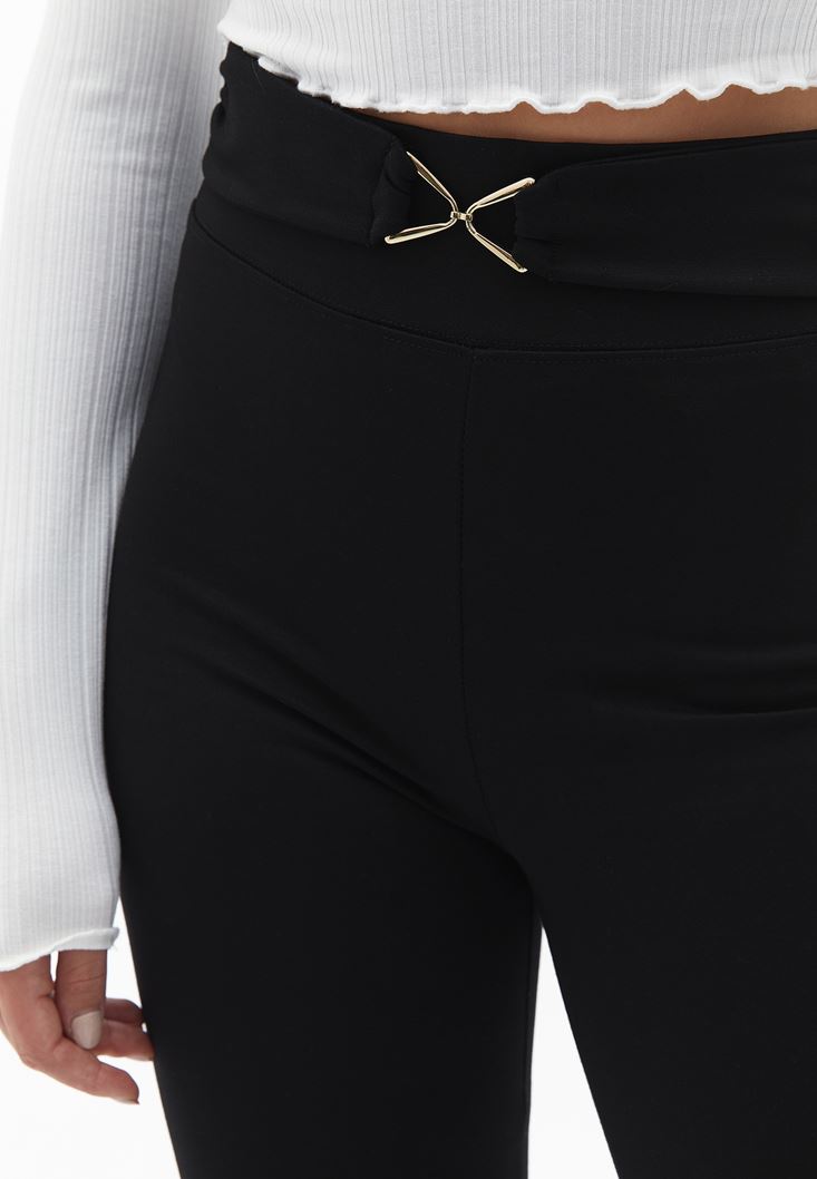 • Bayan Siyah Ultra Yüksek Bel Kemer Detaylı Tayt
