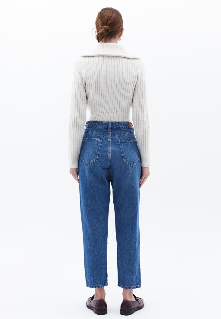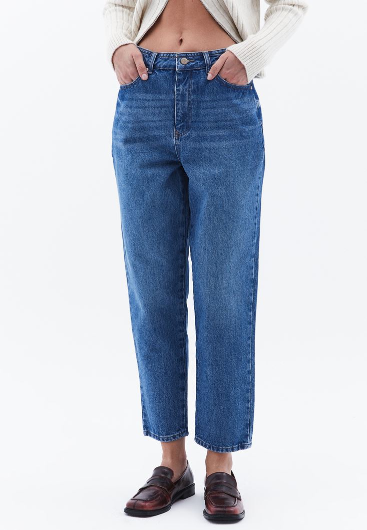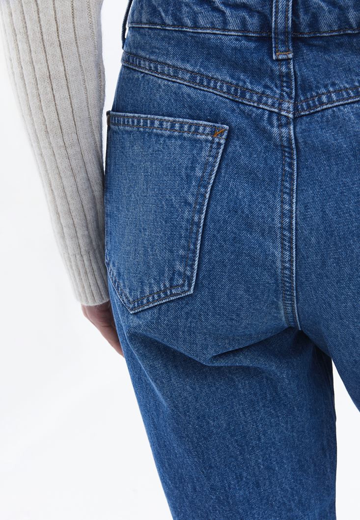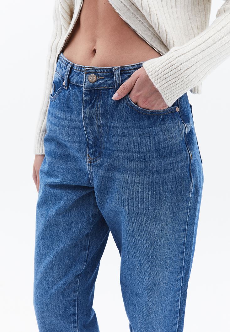 Mavi Ultra Yüksek Bel Mom-Fit Pantolon