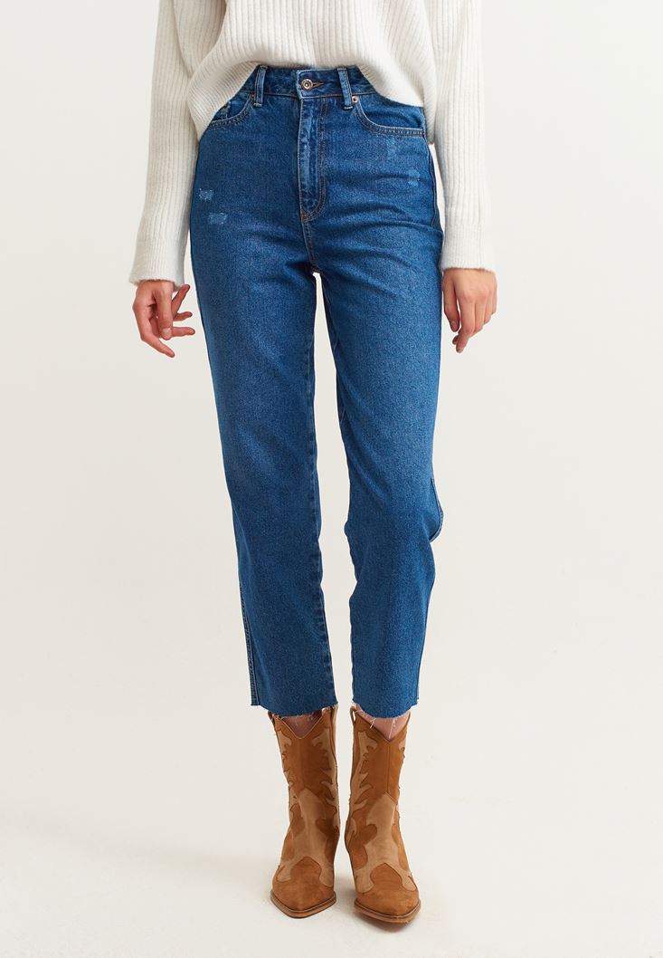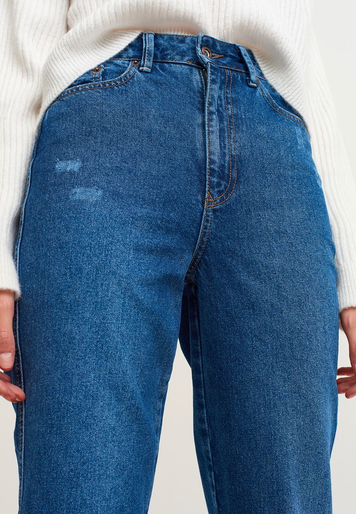 Mavi Ultra Yüksek Bel Mom Jean Pantolon