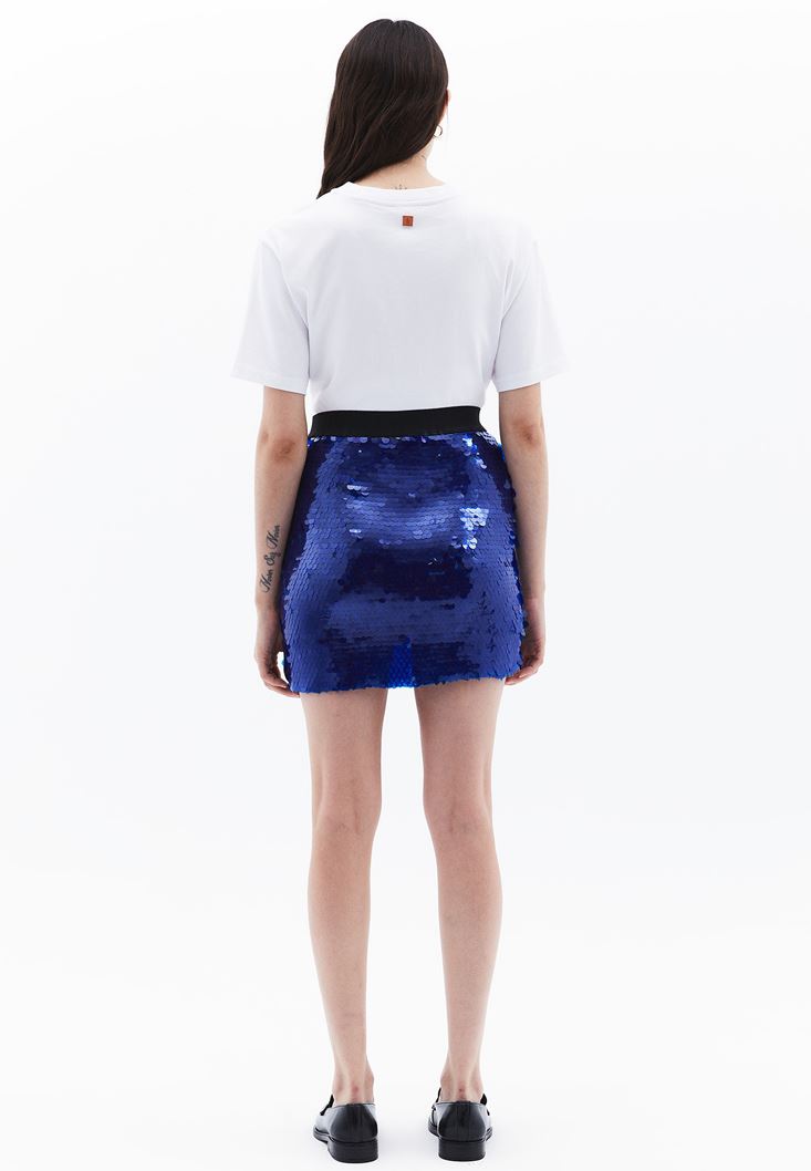 Mavi Ultra Yüksek Bel Payetli Mini Etek