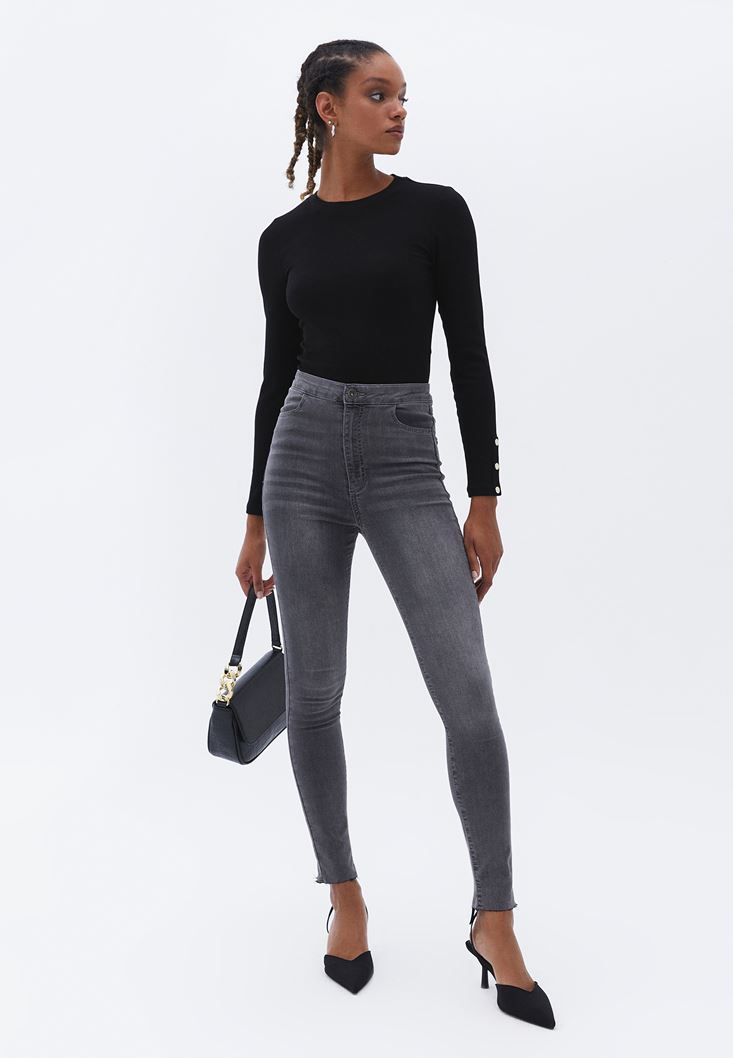 • Bayan Gri Ultra Yüksek Bel Skinny Pantolon