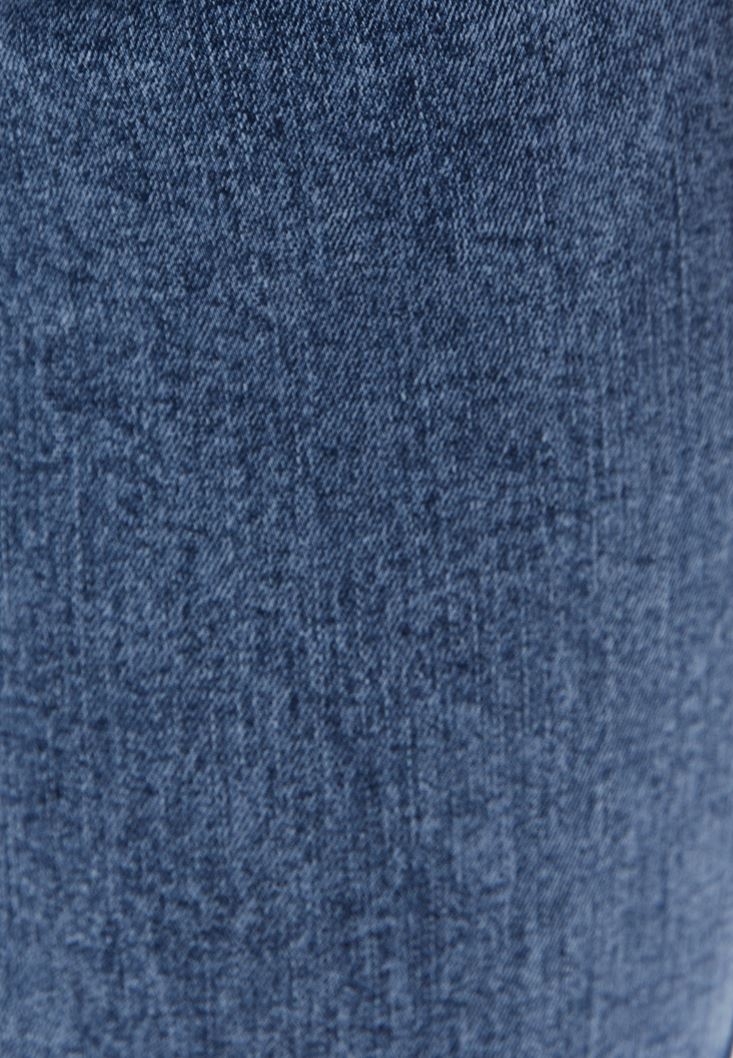 Pamuk karışımlı doku, yıkamalı denim, ultra yüksek bel, bedeni saran esnek jegging fit, bilekte biten paça boyu.