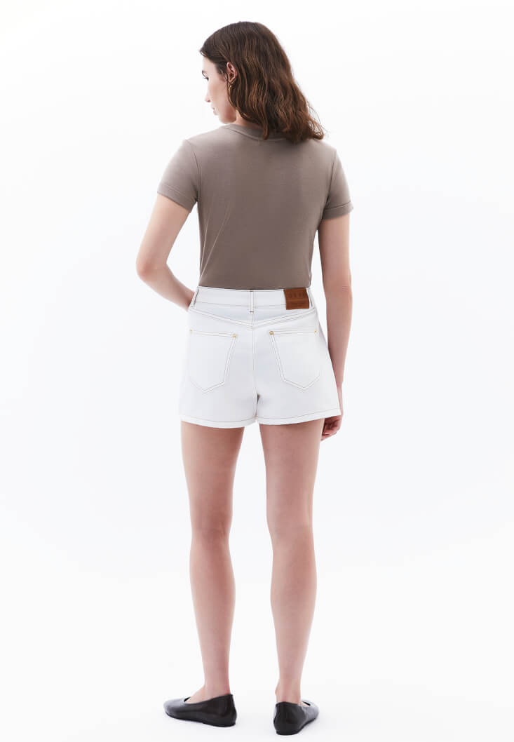 Beyaz Ultra Yüksek Bel Şort