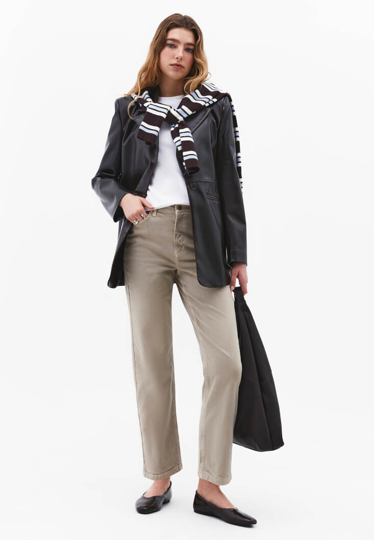 • Bayan Bej Ultra Yüksek Bel Straight-Fit Pantolon