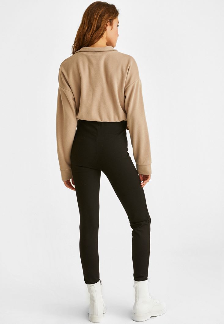 Ultra Yüksek Bel Tayt modeli, viskon içerikli dokusu ve esnek yapısı ile Oxxo'da karşınıza çıkıyor. Kadın tayt modeli, yüksek bel görünümü ve ön kısmında yer alan dikiş detayı ile yeni sezonda oldukça dikkat çekiyor. Günlük kombinlerinizde hoş bir duruş yakalayacağınız yüksek bel tayt modeli ile tarzınıza yön verebilirsiniz. Kadın tayt modeli ile crop veya oversize sweatler tercih ederek sportif şıklığa kolaylıkla ulaşabilirsiniz. Yüksek bel tayt modeli ile elde edeceğiniz hoş görünümleri sneakerlarla veya postal botlarla ön plana çıkarabilirsiniz. Oxxo'nun benzersiz dokularla ve esnek kalıplarla sizlere sunduğu kadın tayt modelleri ile detayların gücünü rahatlıkla keşfedebilirsiniz.