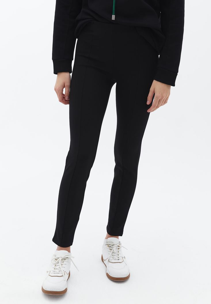 Viskon karışımlı esnek doku, ultra yüksek bel, bedeni saran skinny fit, beli lastikli.