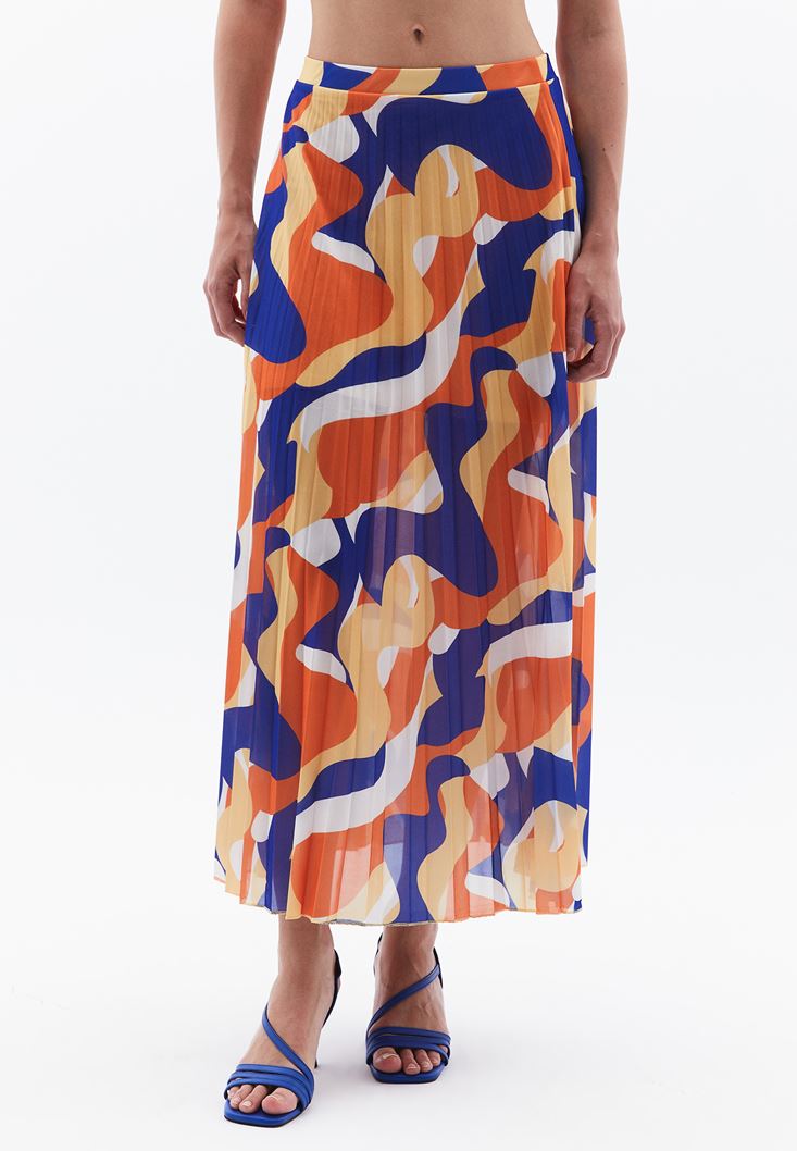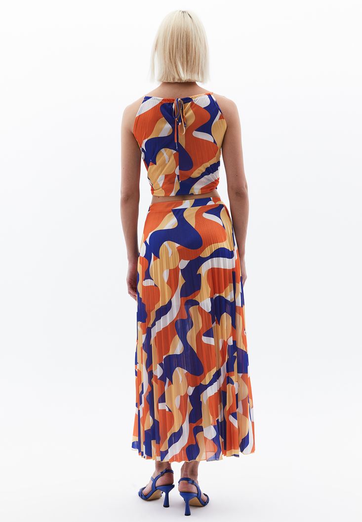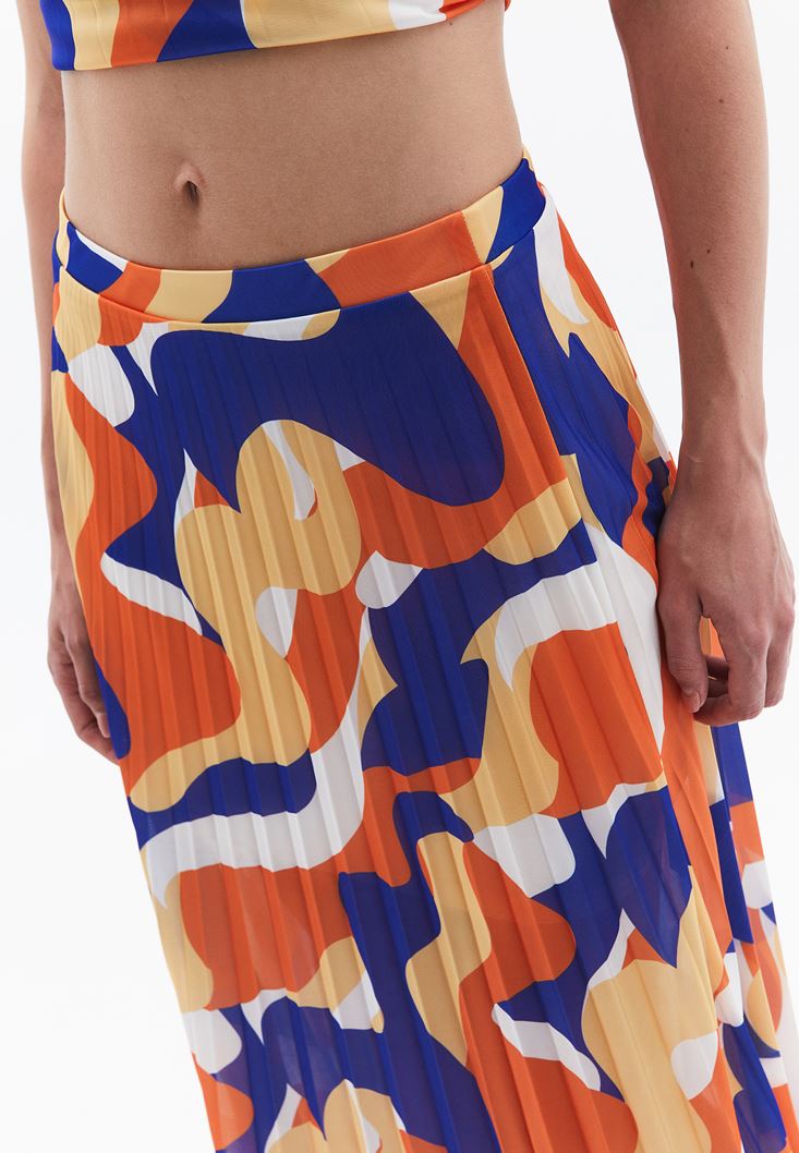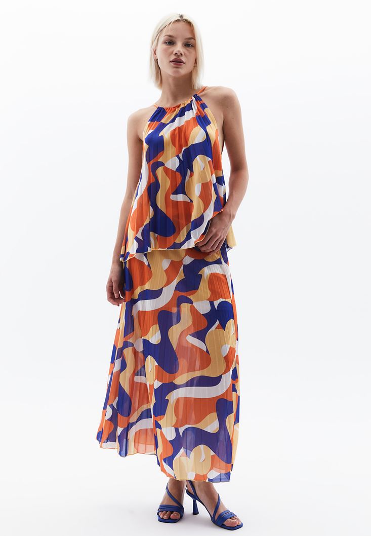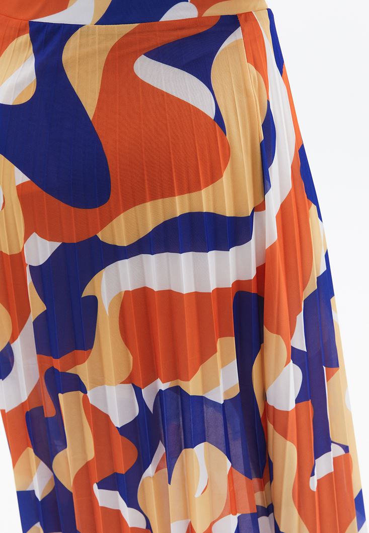 Soyut renk geçişli tasarım, ultra yüksek bel, uzun boy kesim, pileli doku, içi astarlı, a kesim, beli lastikli.