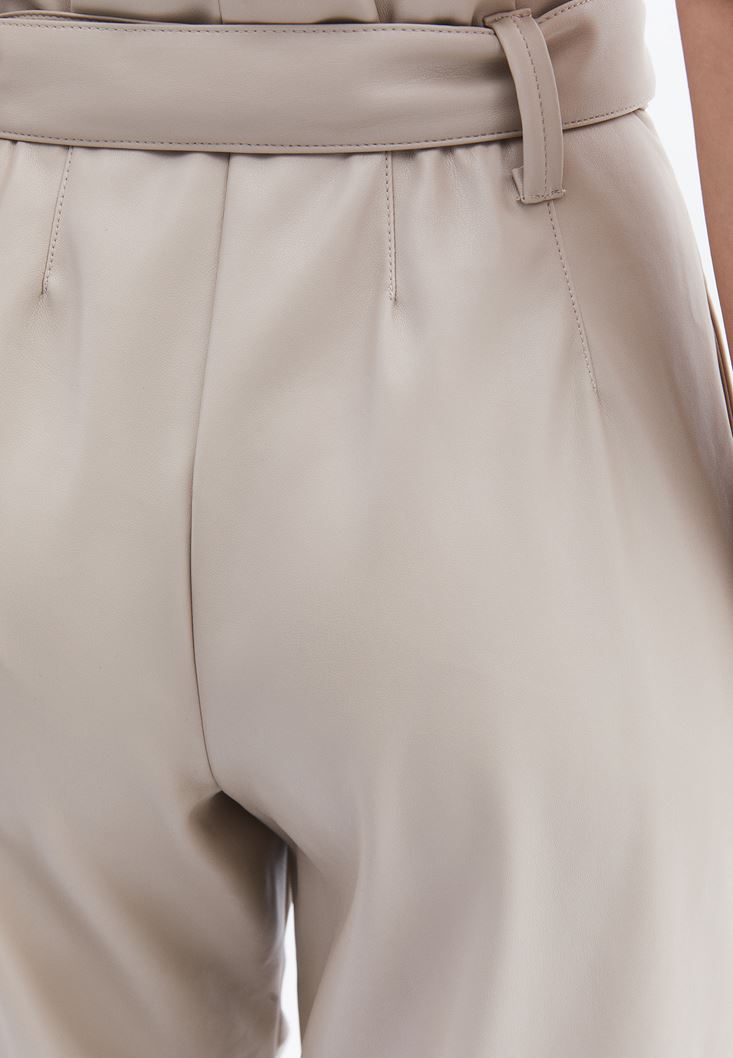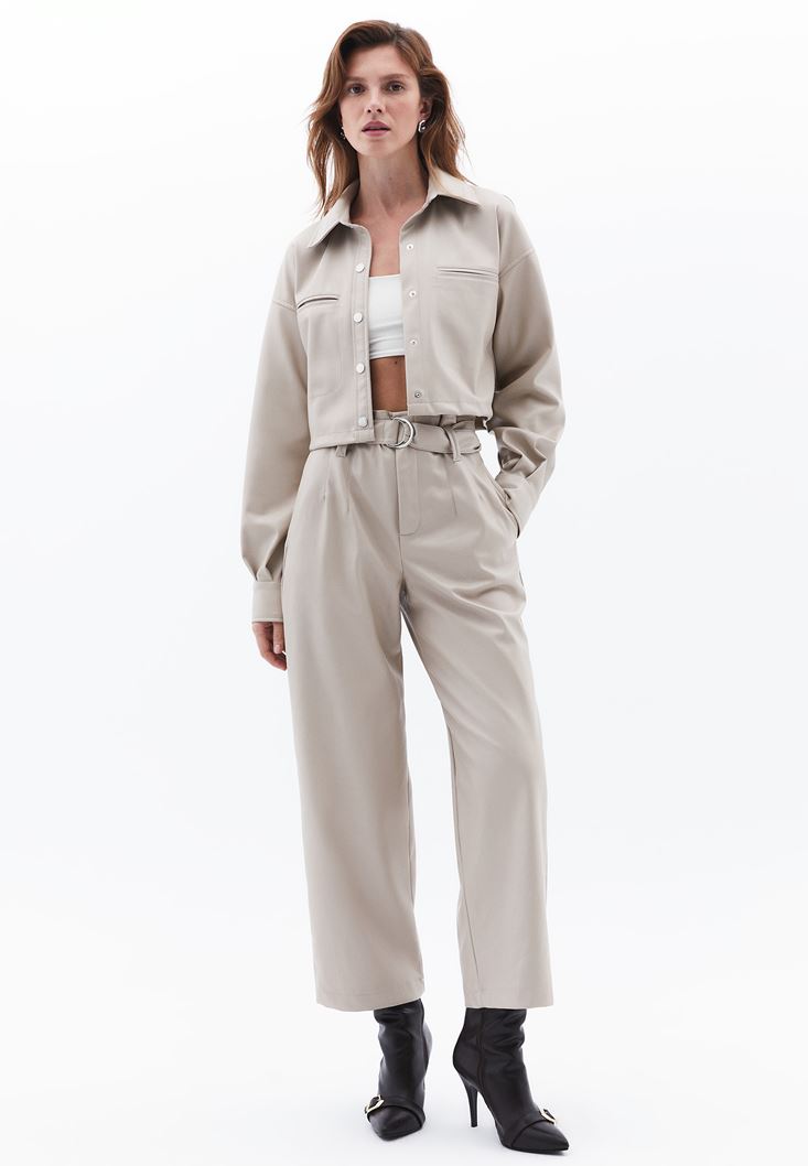 • Bayan Bej Ultra Yüksek Bel Vegan Deri Pantolon