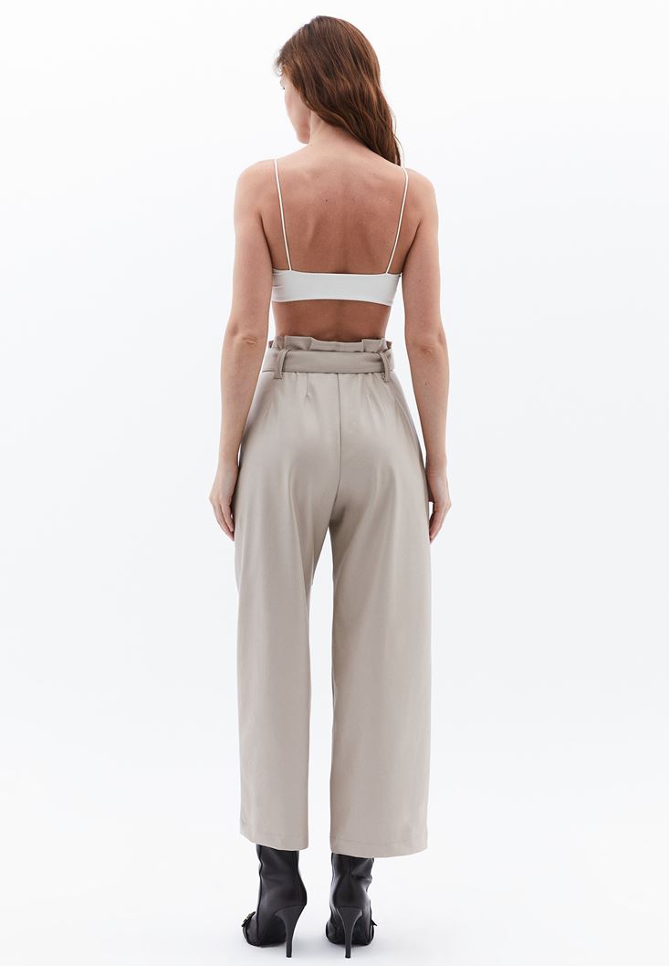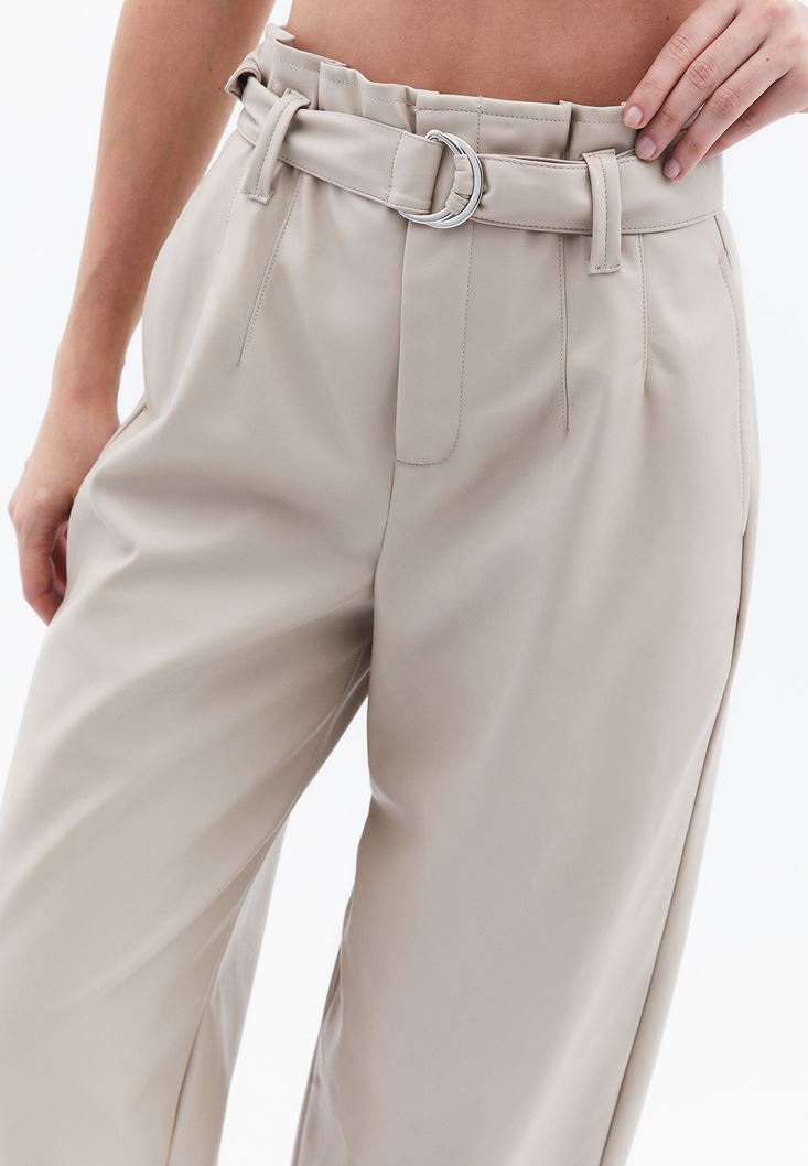 Bej Ultra Yüksek Bel Vegan Deri Pantolon