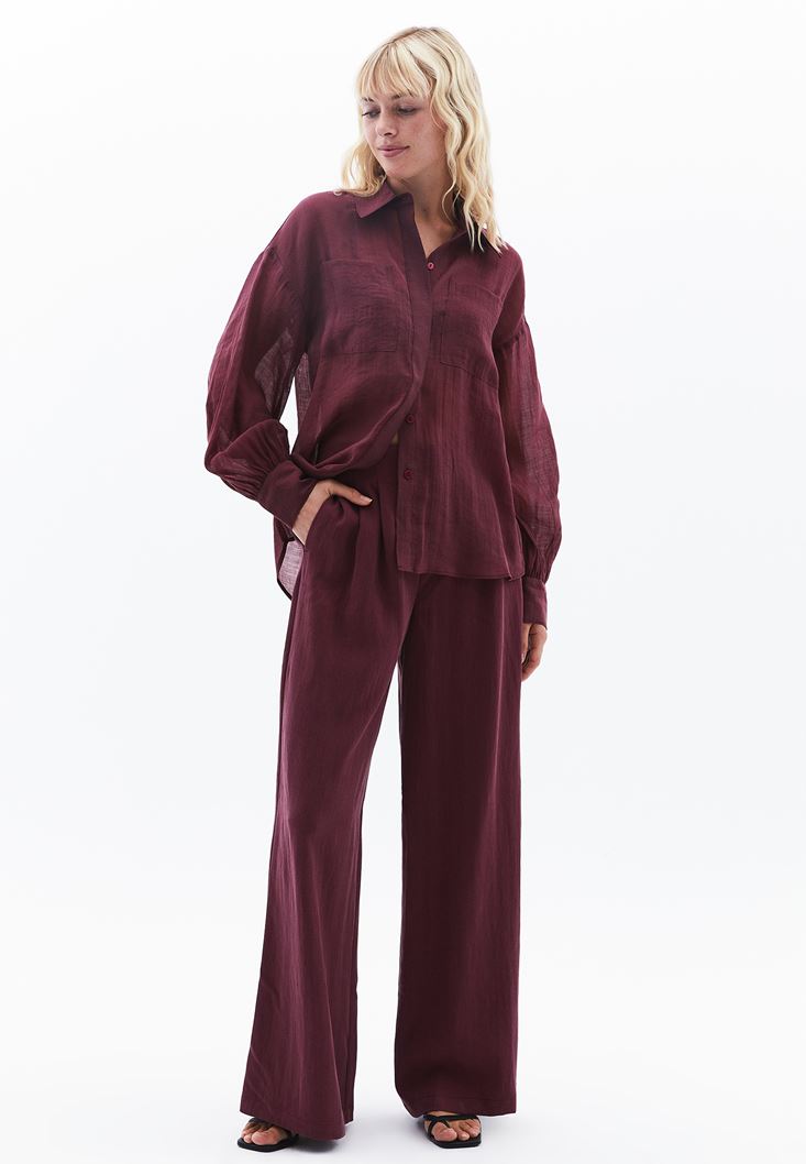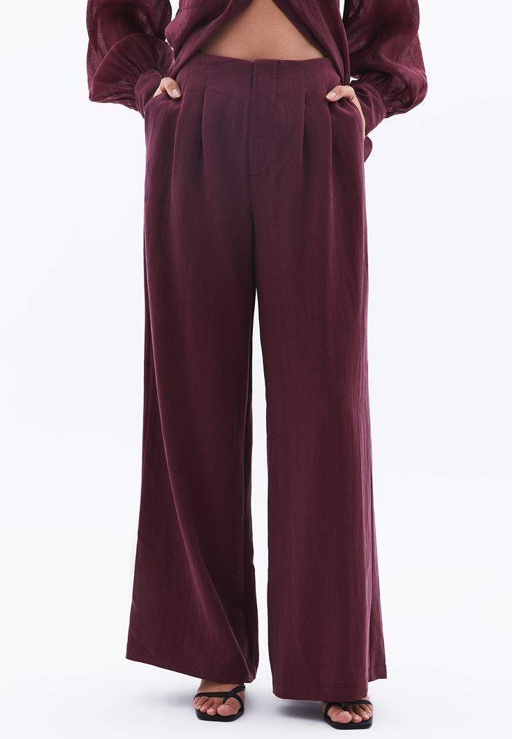 Bordo Ultra Yüksek Bel Wide-Leg Pantolon ( TENCEL™ )