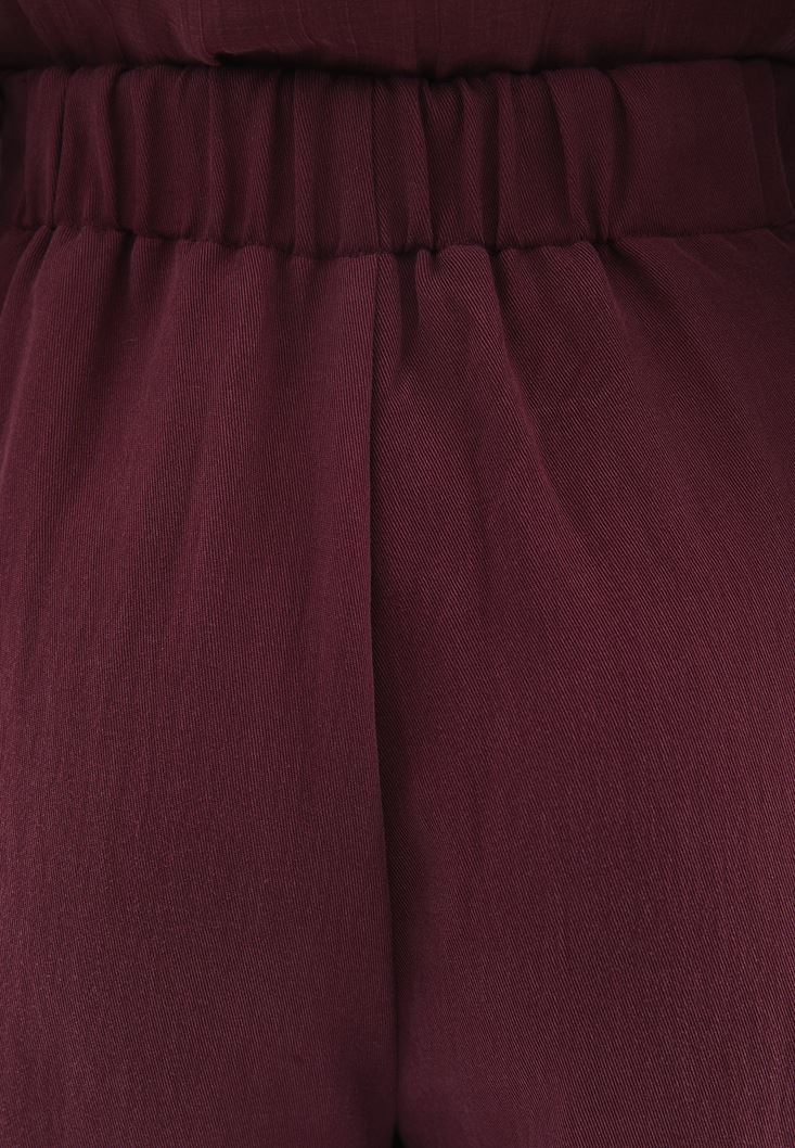 • Bayan Bordo Ultra Yüksek Bel Wide-Leg Pantolon ( TENCEL™ )