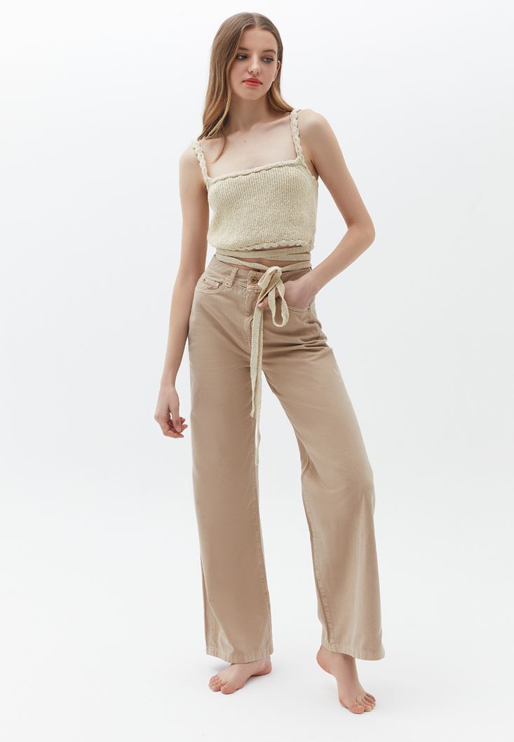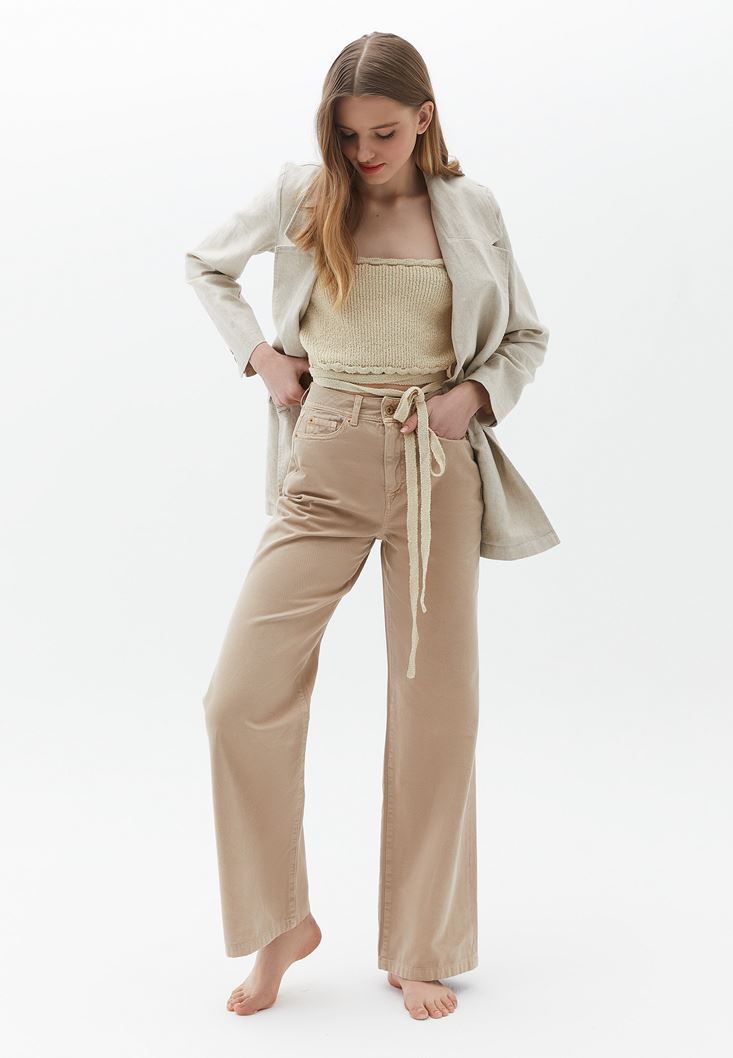 • Bayan Bej Ultra Yüksek Bel Wide-Leg Pantolon