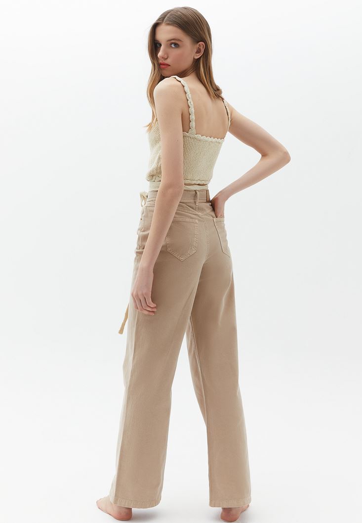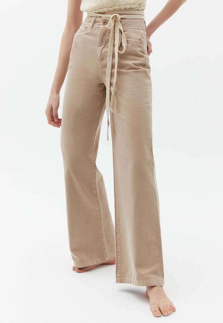%100 pamuk içerikli doku, ultra yüksek bel, bol paça, bedenden uzak fit, önü ve arkası iki cepli, wide fit.