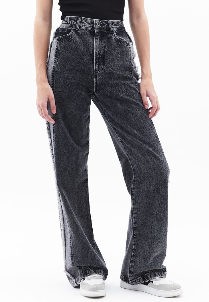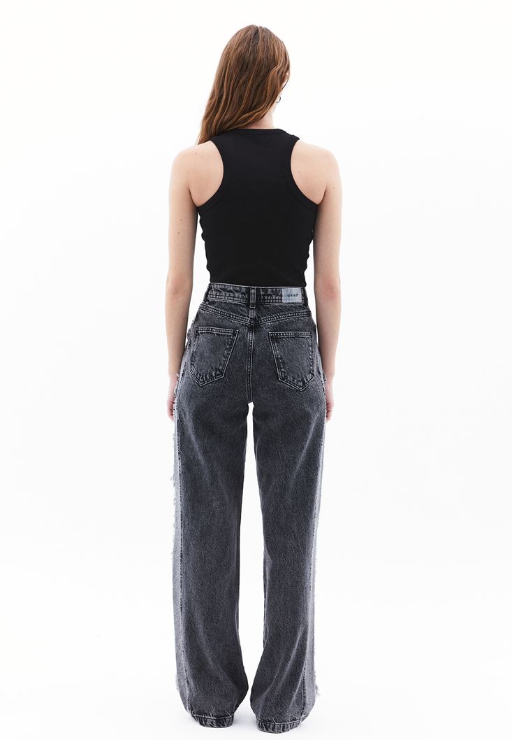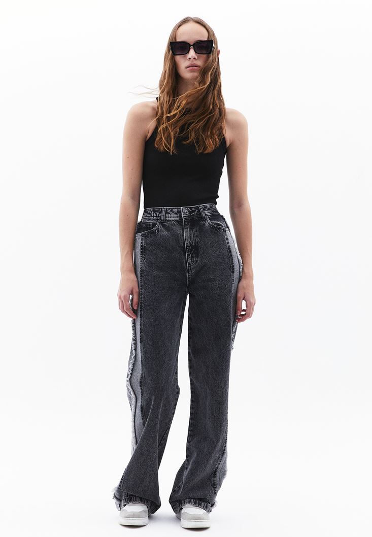 Gri Ultra Yüksek Bel Wide-Leg Pantolon