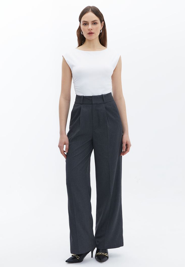 • Bayan Gri Ultra Yüksek Bel Wide-Leg Pantolon