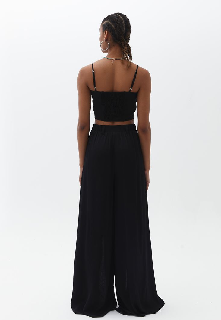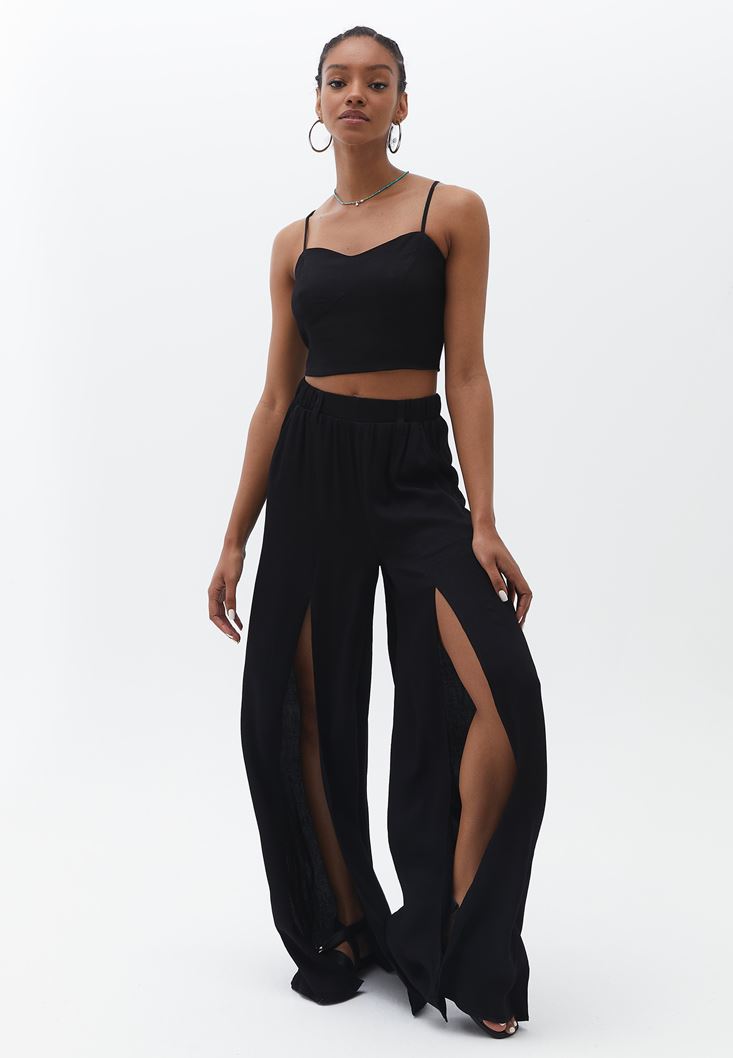 Siyah Ultra Yüksek Bel Yırtmaçlı Pantolon