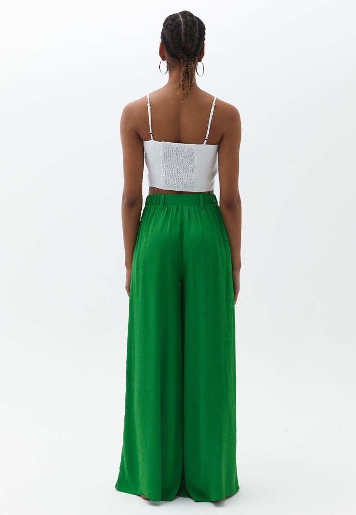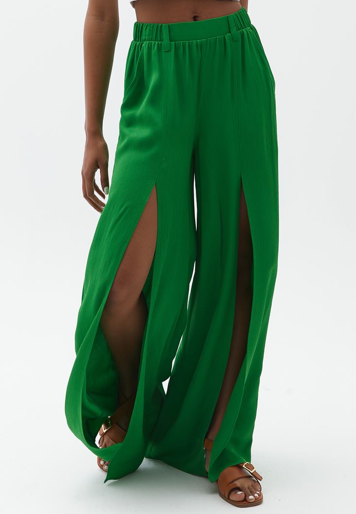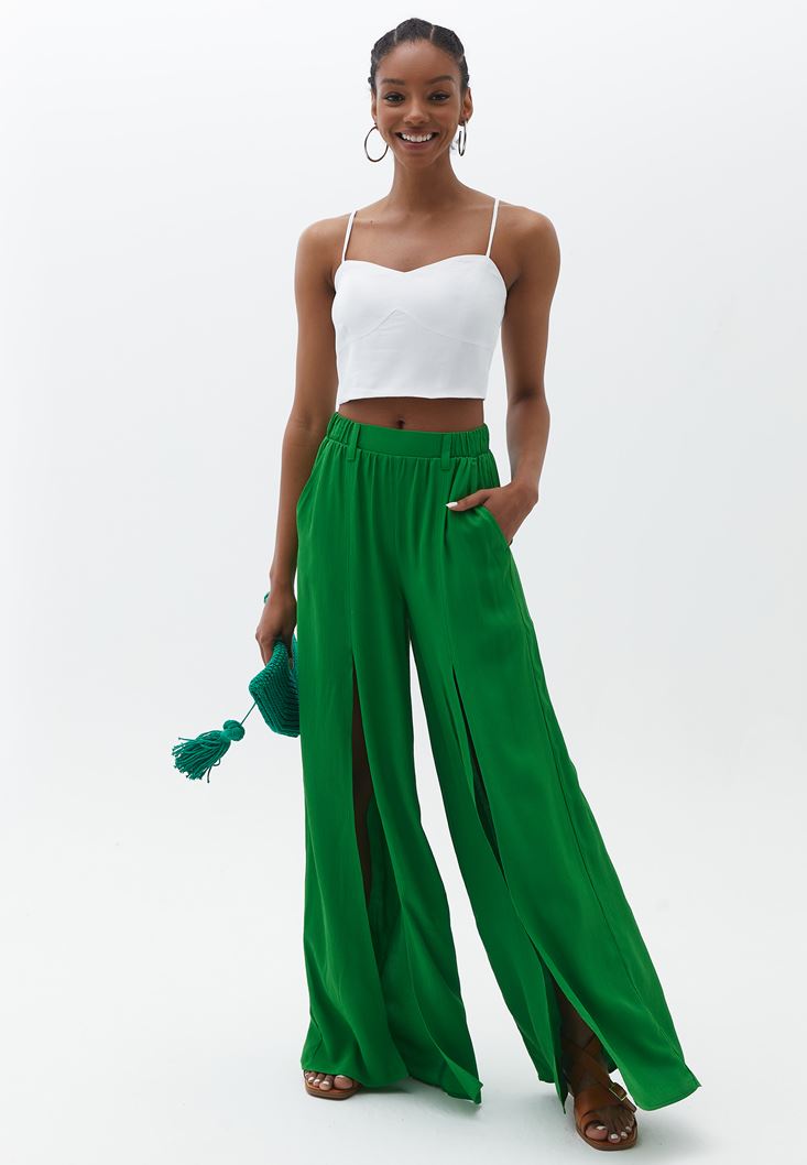 Yeşil Ultra Yüksek Bel Yırtmaçlı Pantolon