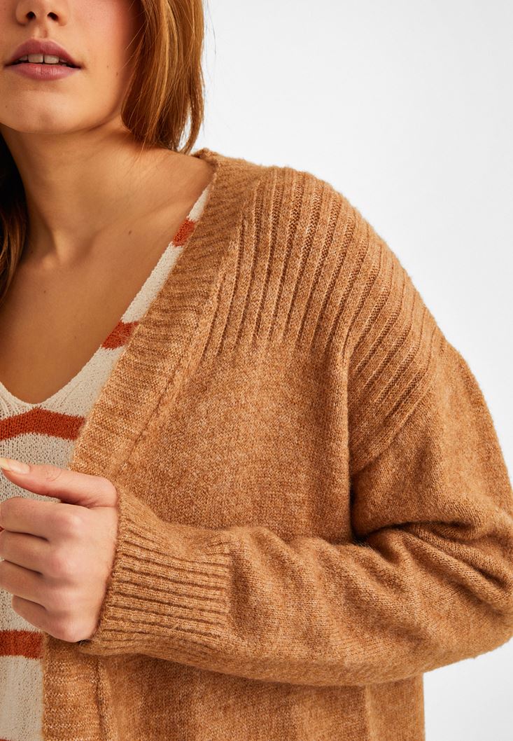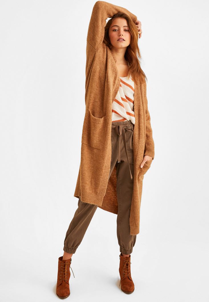 Uzun Cepli Hırka modeli, yumuşacık dokusu ve hoş görünümü ile yeni sezonda sizlerle buluşuyor. kadın hırka modeli, ceplerinin yanı sıra omuz kısmındaki geniş fitilli örme yapısıyla da oldukça dikkat çekiyor. Uzun hırka modeli, kombinlerinize rahatlık ve şıklık katabileceğiniz bir parça olarak Oxxo'da karşınıza çıkıyor. Askılı atletlerle ve bol pantolonlarla oluşturacağınız salaş görünümleri kadın hırka modeli ile vurgulayabilirsiniz. Uzun hırka modeli ile triko kazakları ve dar paçalı pantolonları da rahatlıkla bir araya getirebilirsiniz. Oxxo'nun sıcaklık veren dokularla ve dikkat çeken ayrıntılarla sizlere sunduğu uzun hırka modelleri ile tarzınıza ayrıcalık katabilirsiniz.